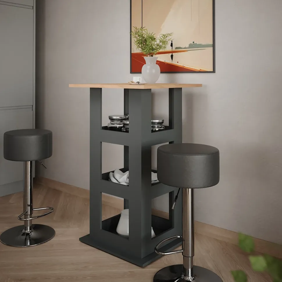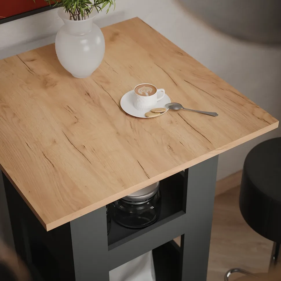 - MATERIAL: Der Bartisch besteht aus 16 mm starker, pflegeleichter Spanplatte.
