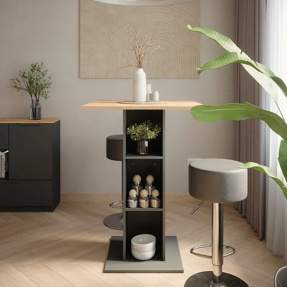 - MAßE: Der Stehtisch für die Küche hat eine Tiefe von 75 cm, eine Breite von 75 cm und eine Höhe von 106 cm.