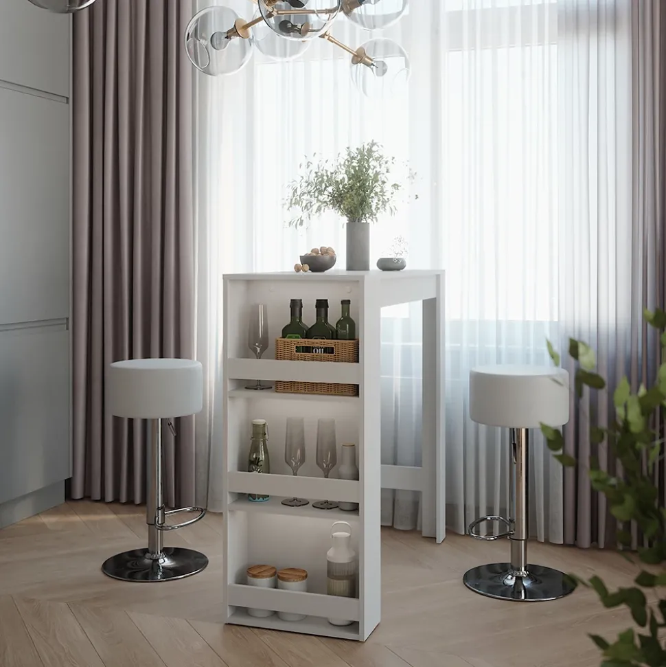 - Der stilvolle Bartresen für das Esszimmer eignet sich perfekt als Tresentisch mit Regal oder als Stehtisch für die Küche. Ein praktisches Möbelstück für gesellige Runden und gemütliche Mahlzeiten.