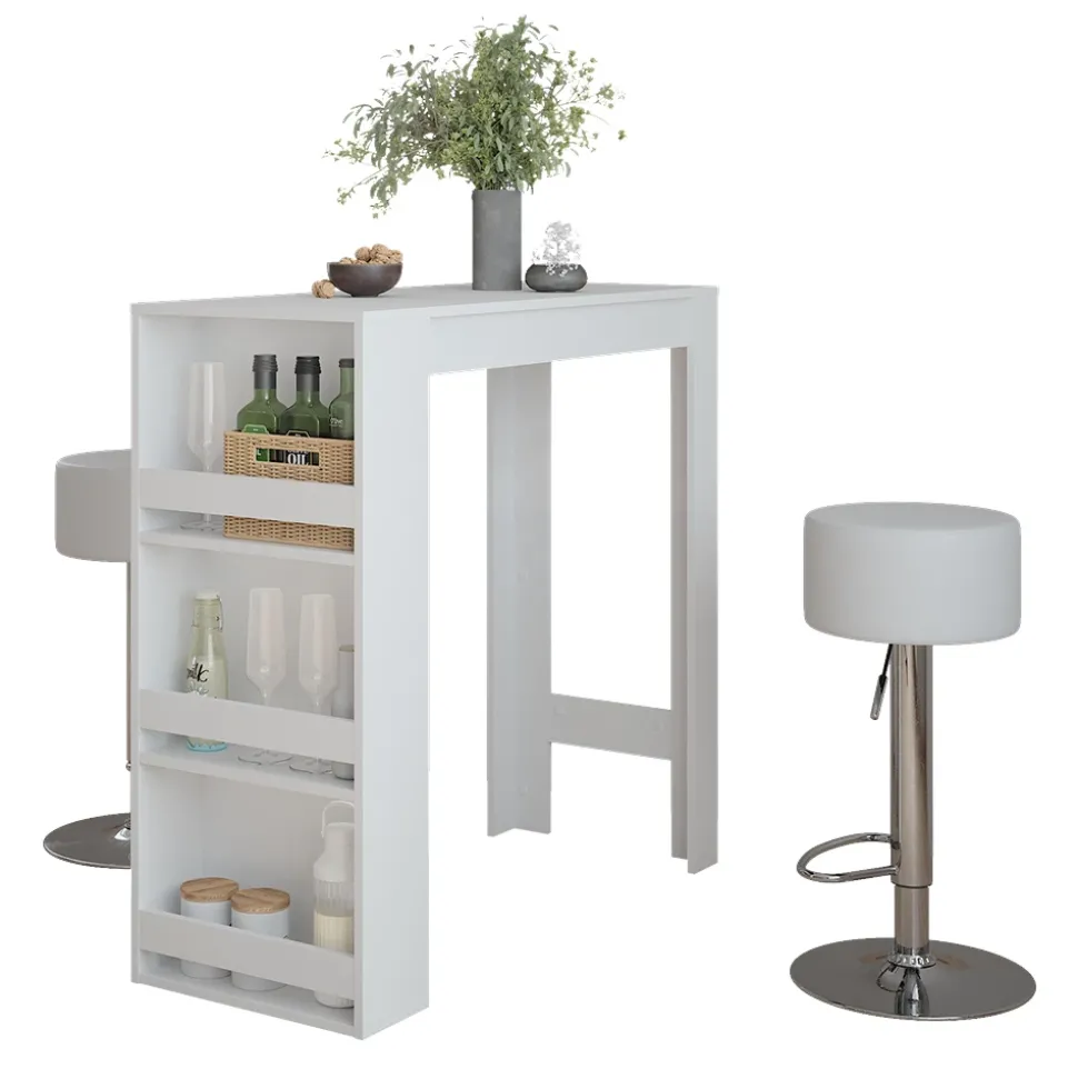 Das Bartisch-Set „Repose“ ist die perfekte Ergänzung für Ihre Küche oder Ihren Essbereich. Mit dem stilvollen Stehtisch, den bequemen Barhockern und dem praktischen Regal bietet dieses Set alles, was Sie für gemütliche Abende mit Familie und Freunden brauchen. Schaffen Sie Ihre persönliche Bistro-Atmosphäre und genießen Sie Cocktails oder ein entspanntes Frühstück am Bartresen. Mit dem Bartisch-Set „Repose“ bringen Sie nicht nur funktionale Möbel in Ihr Zuhause, sondern auch einen Ort der Gemeinsamkeit und des Genusses. Gönnen Sie sich dieses Set und erleben Sie unvergessliche Momente mit Ihren Liebsten.