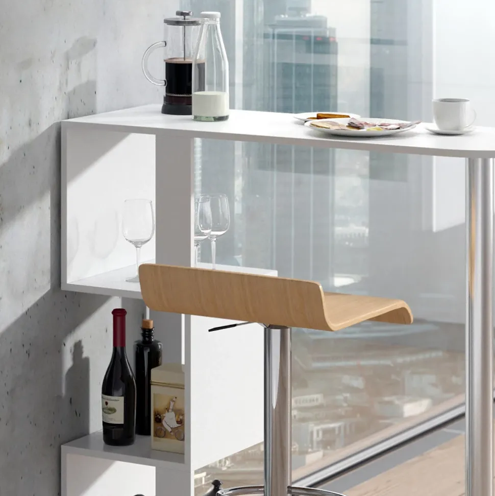 - Der Bartresen für das Esszimmer dank seiner ergonomischen Form und vielen offenen Ablagen ideal für kleine Räume. Er bietet viel Platz und ist dabei platzsparend.