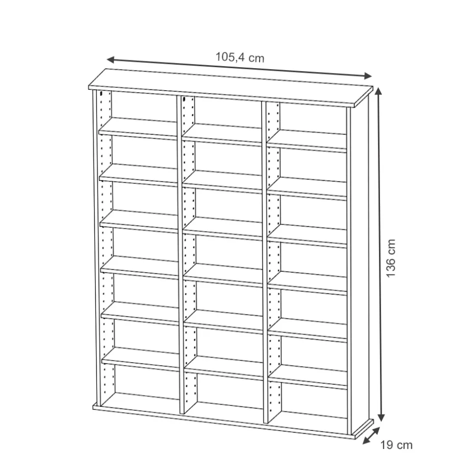 - MAßE: Der DVD-Schrank hat eine Breite von 105 cm, eine Höhe von 136 cm und eine Tiefe von 19 cm. Alle detaillierten Größen sind auf den Fotos angegeben.