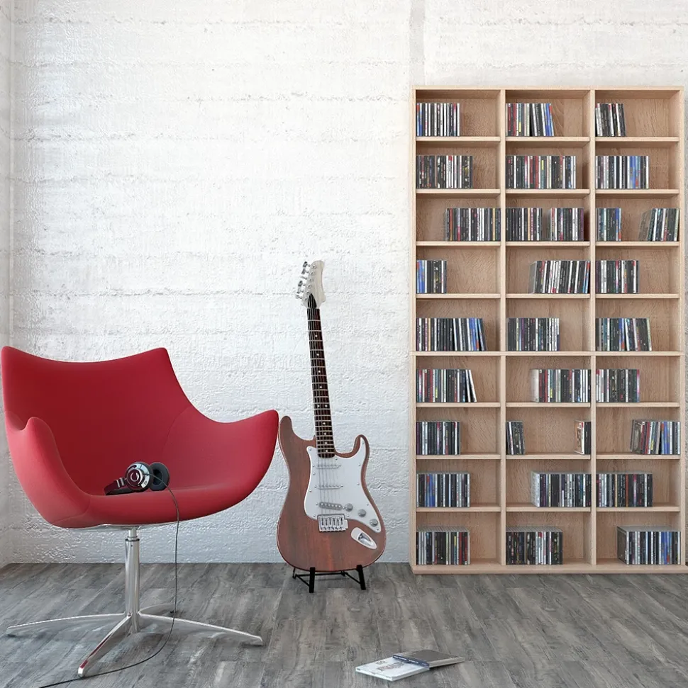 Die Möbelserie „Jukebox“ bietet Ihnen stilvolle freistehende Regale für CDs. Gestalten Sie Ihren Raum mit diesen einzigartigen Möbelstücken, die Ihre CD-Sammlung gekonnt präsentieren.