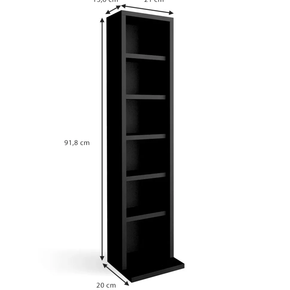 - MAßE: Der DVD-Schrank hat eine Breite von 21 cm, eine Höhe von 91,8 cm und eine Tiefe von 20 cm. Alle detaillierten Größen sind auf den Fotos angegeben.