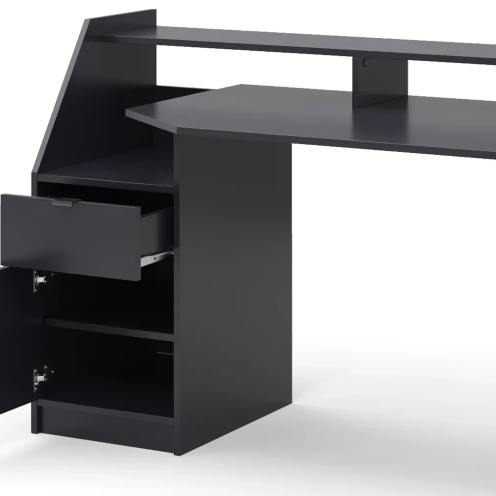 Der Gaming Tisch Joel ist der perfekte Schreibtisch sowohl für Gamer als auch für Büroarbeiter mit einem Auge für modernen Stil. Er bietet offene und geschlossene Einlegeböden, ein Regal für Ihre Systemeinheit und ein Display über Kopf. Dieses Modell ist Teil der Serie Joel mit anderen Varianten, so dass Sie Ihren gesamten Arbeitsbereich aufeinander abstimmen können. Der Joel Gaming Tisch bietet nicht nur Funktionalität, sondern auch ein elegantes Design, das Ihren Arbeitsbereich aufwerten wird. Stellen Sie sich vor, wie Sie Ihre Lieblingsvideospiele oder das Arbeiten an Ihren Projekten auf diesem stilvollen Tisch genießen – ein Muss für jeden, der sich nach einem Schreibtisch sehnt, der sowohl funktional als auch ansprechend ist.