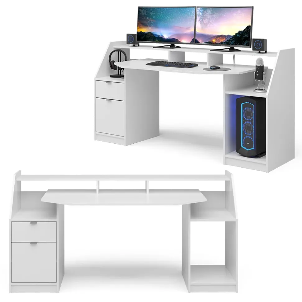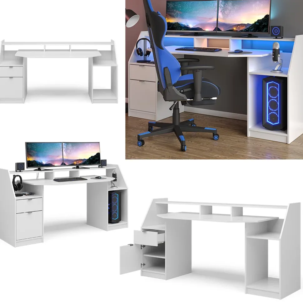 - MAßE: Der Gaming Schreibtisch hat eine Tiefe von 66 cm, eine Breite von 180 cm und eine Höhe von 91 cm.