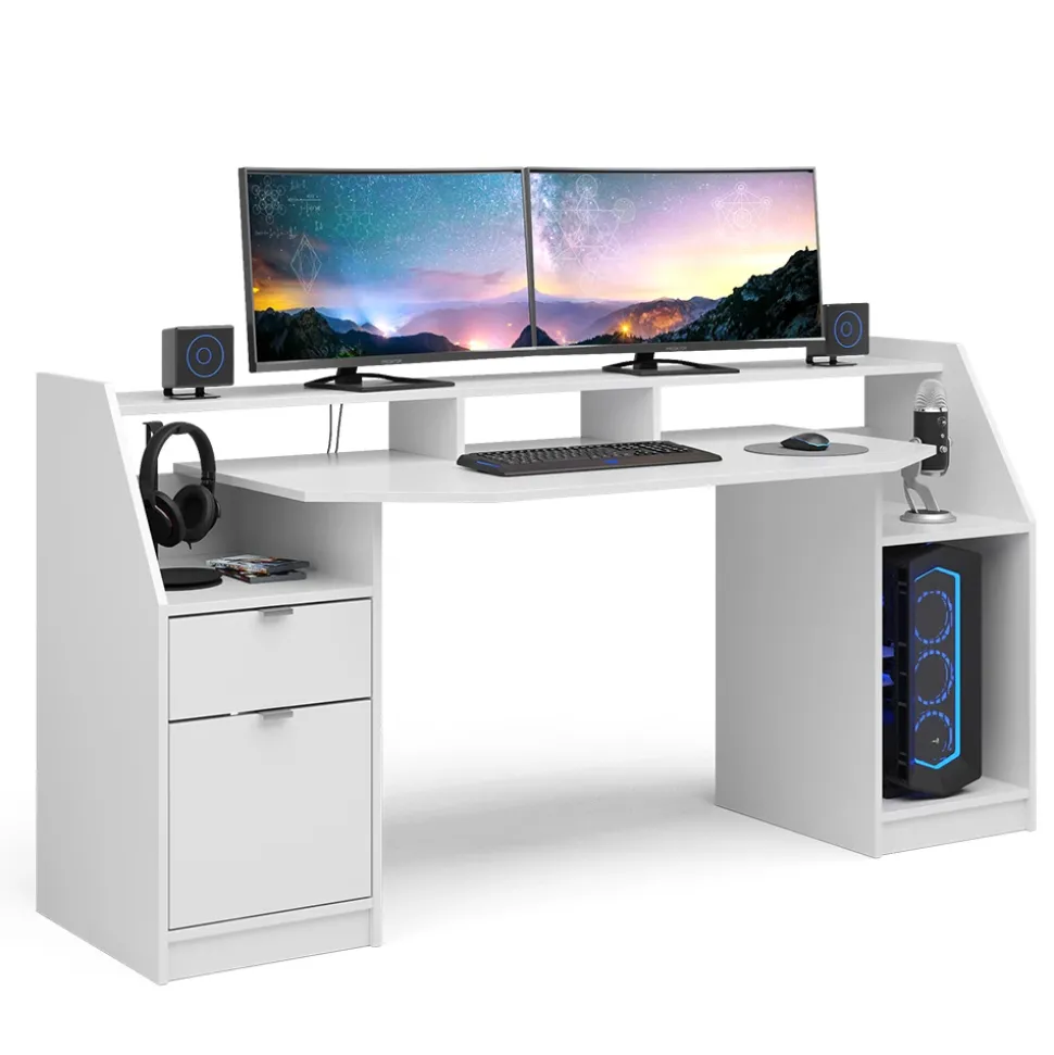 - Der Computertisch Joel bietet offene und geschlossene Einlegeböden mit einem Regal für Systemeinheit und ein Display über Kopf für eine bequeme Nutzung.
