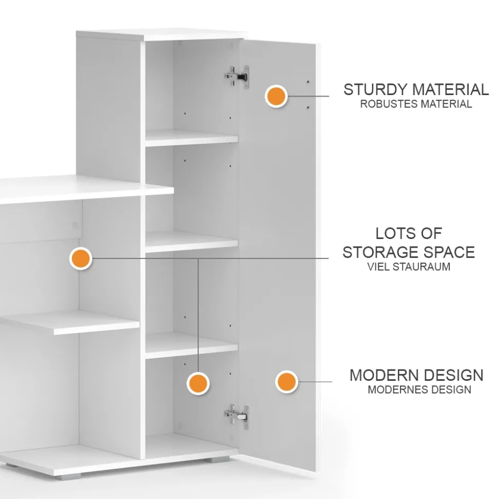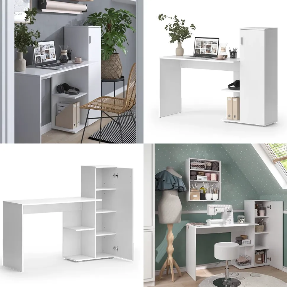 - Ein Arbeitstisch für das Büro mit einer Tür sowie 4 geschlossenen und 2 offenen Fächern. Ideal für eine organisierte Arbeitsumgebung.
