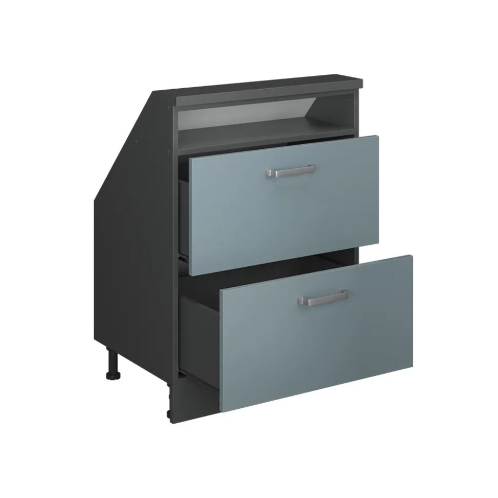 Der Dachschrägenschrank Rion ist die perfekte Lösung für alle, die ihre Dachschrägen optimal nutzen möchten. Mit zwei ausziehbaren Schubladen und einem offenen oberen Fach bietet er großzügigen Stauraum für Kleidung und andere Alltagsgegenstände. Die robuste Konstruktion und die schräge Oberseite machen ihn zu einem stabilen und stilvollen Möbelstück. Die versteckten Füße sorgen für einen sicheren Stand und ein elegantes Gesamtbild.