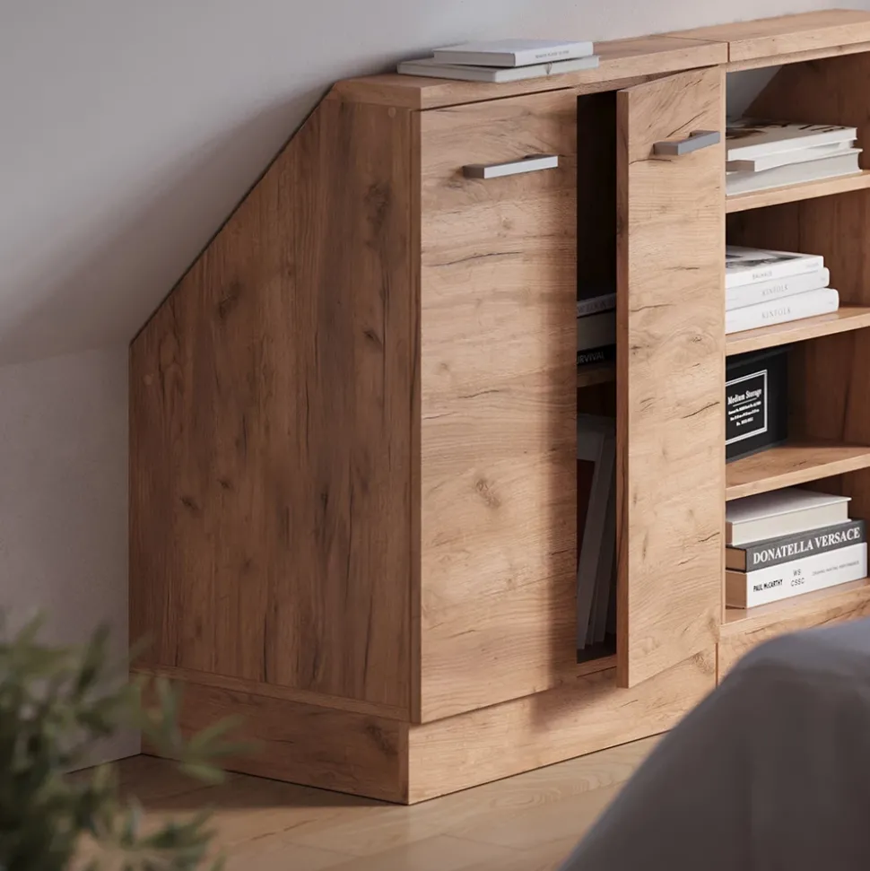 - Die Dachschrägenmöbel Rion sind die ideale Lösung, um ungenutzten Raum unter dem Dach optimal zu nutzen. Sie ermöglichen eine durchdachte und effiziente Gestaltung des vorhandenen Platzes.
