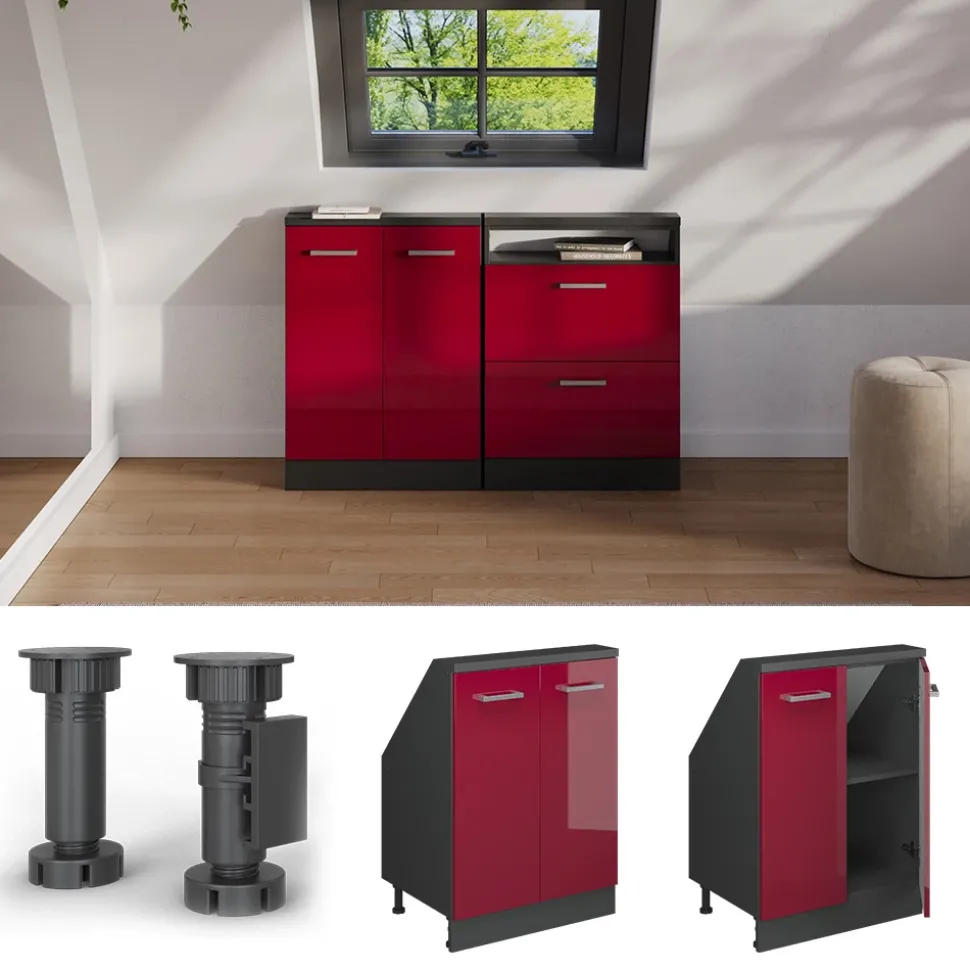- Der Schrank für Dachschrägen zeichnet sich durch eine robuste Konstruktion und eine abgeschrägte Oberseite aus. Zudem verfügt er über bequeme Griffe, die eine einfache Handhabung ermöglichen.