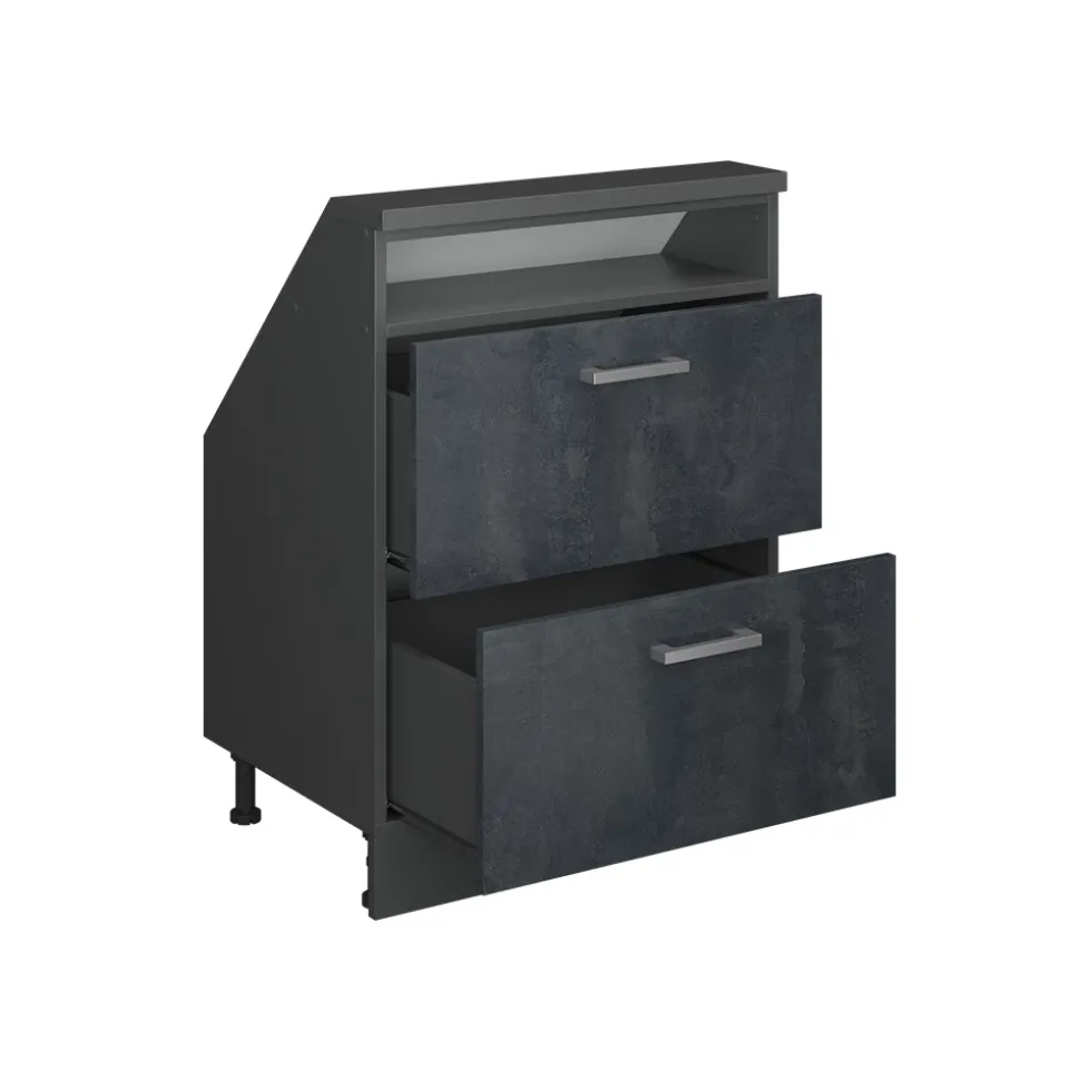 Der Dachschrägenschrank Rion ist die perfekte Lösung für alle, die ihre Dachschrägen optimal nutzen möchten. Mit zwei ausziehbaren Schubladen und einem offenen oberen Fach bietet er großzügigen Stauraum für Kleidung und andere Alltagsgegenstände. Die robuste Konstruktion und die schräge Oberseite machen ihn zu einem stabilen und stilvollen Möbelstück. Die versteckten Füße sorgen für einen sicheren Stand und ein elegantes Gesamtbild.