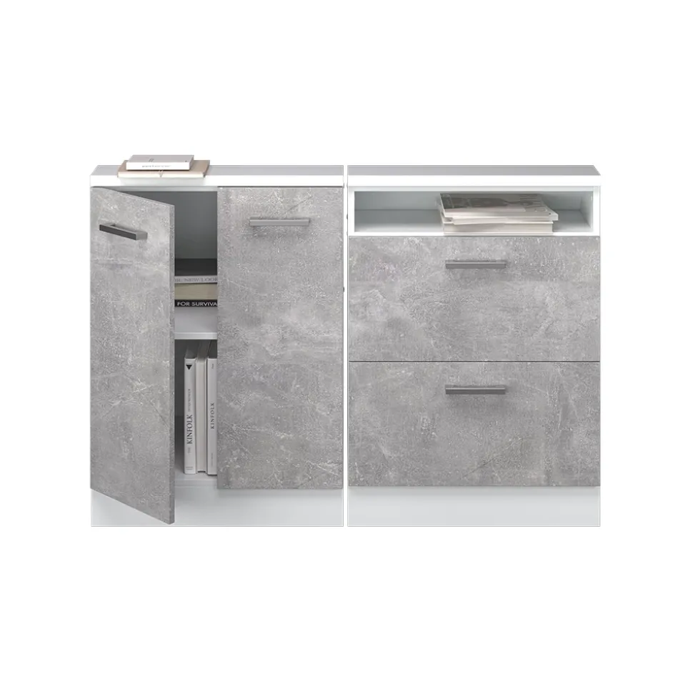 - Das Dachschrägenmöbel-Set besticht durch ein integriertes offenes Fach für zusätzlichen Stauraum und versteckte Füße für eine elegante Optik.