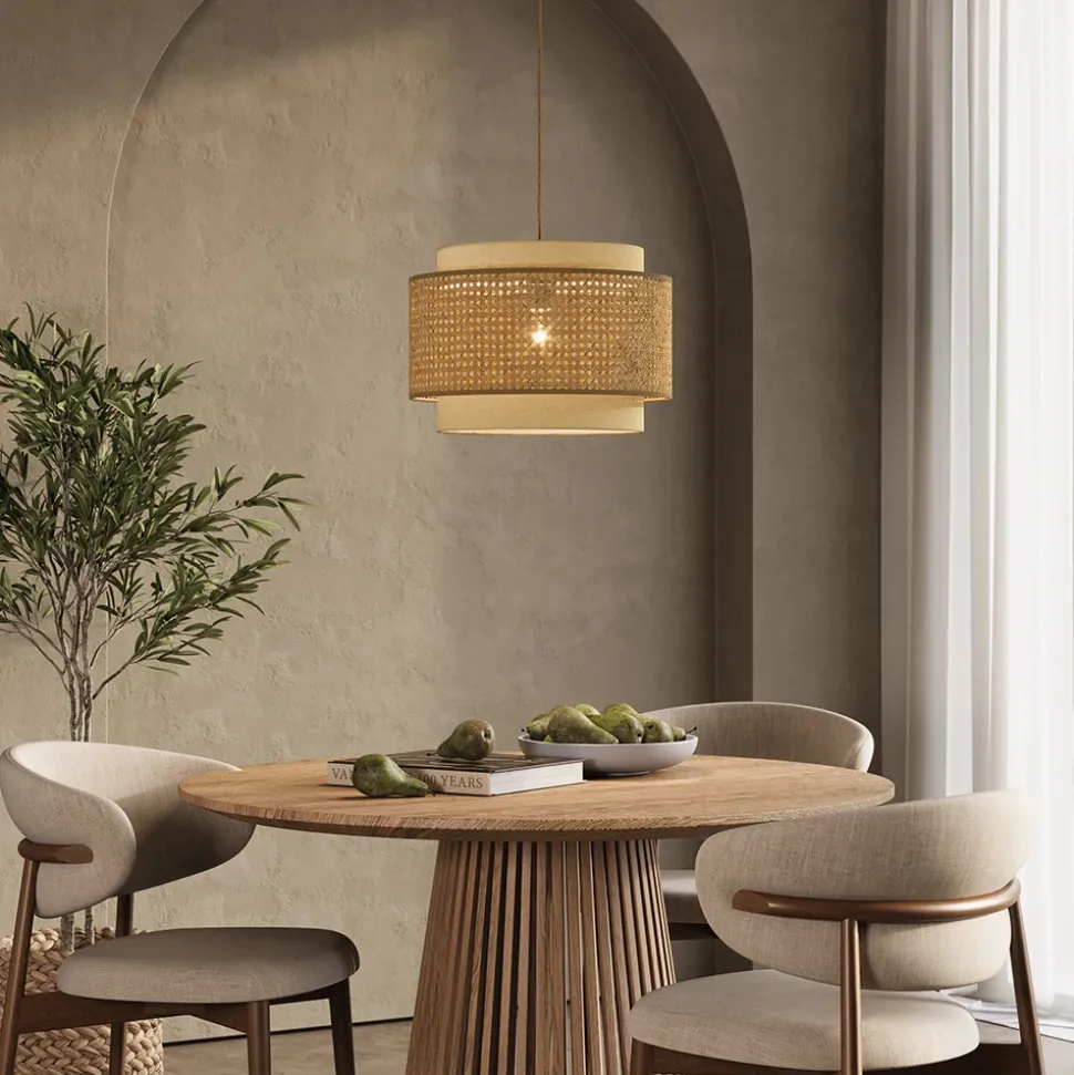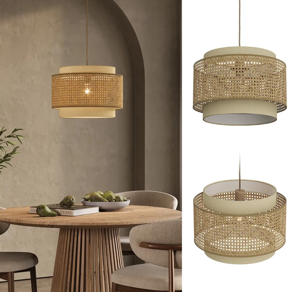 Die Lampen der Serie Morten aus Rattan kombinieren natürliches Design mit moderner Eleganz. Mit ihrem warmen Licht und den handgefertigten Rattan-Details bringt sie ein angenehmes und gemütliches Ambiente in jeden Raum.