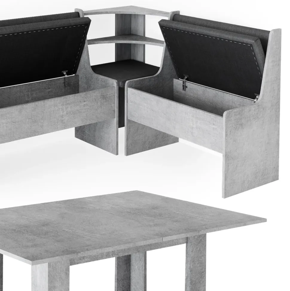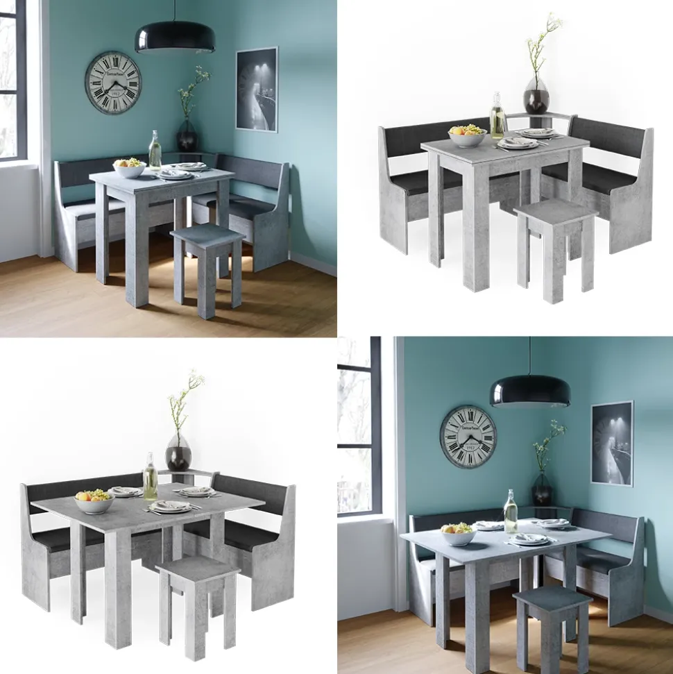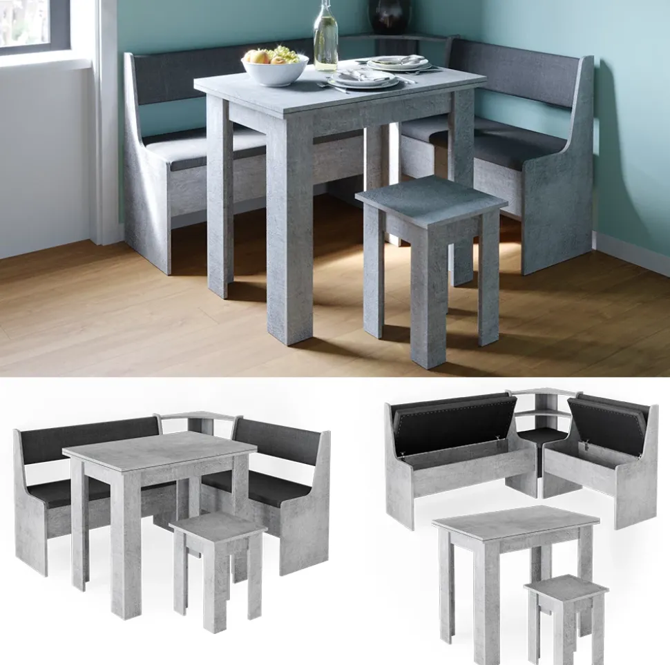 - LIEFERUMFANG: Eckbankgruppe (mit dem Tisch), Montageanleitung, Montagematerial.
