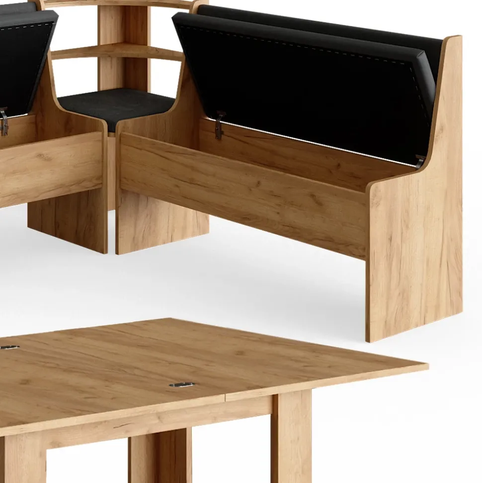 Die Eckbankgruppe Roman mit Tisch ist die perfekte Wahl für jedes Esszimmer oder jede Küche. Der klassische Stil und die gemütlich gepolsterten Sitze machen diese Essgruppe zu einem wahren Blickfang. Genießen Sie morgendliche Brunches oder Dinnerpartys in stilvollem Ambiente. Die komfortable gepolsterte Rückenlehne sorgt für zusätzlichen Komfort und eine angenehme Sitzposition. Diese fertige Lösung für die Küche ist in verschiedenen Ausführungen erhältlich, um Ihren individuellen Bedürfnissen gerecht zu werden. Lassen Sie sich von dem Charme der Eckbankgruppe Roman verzaubern und schaffen Sie ein gemütliches und einladendes Zuhause für Ihre Familie und Freunde.