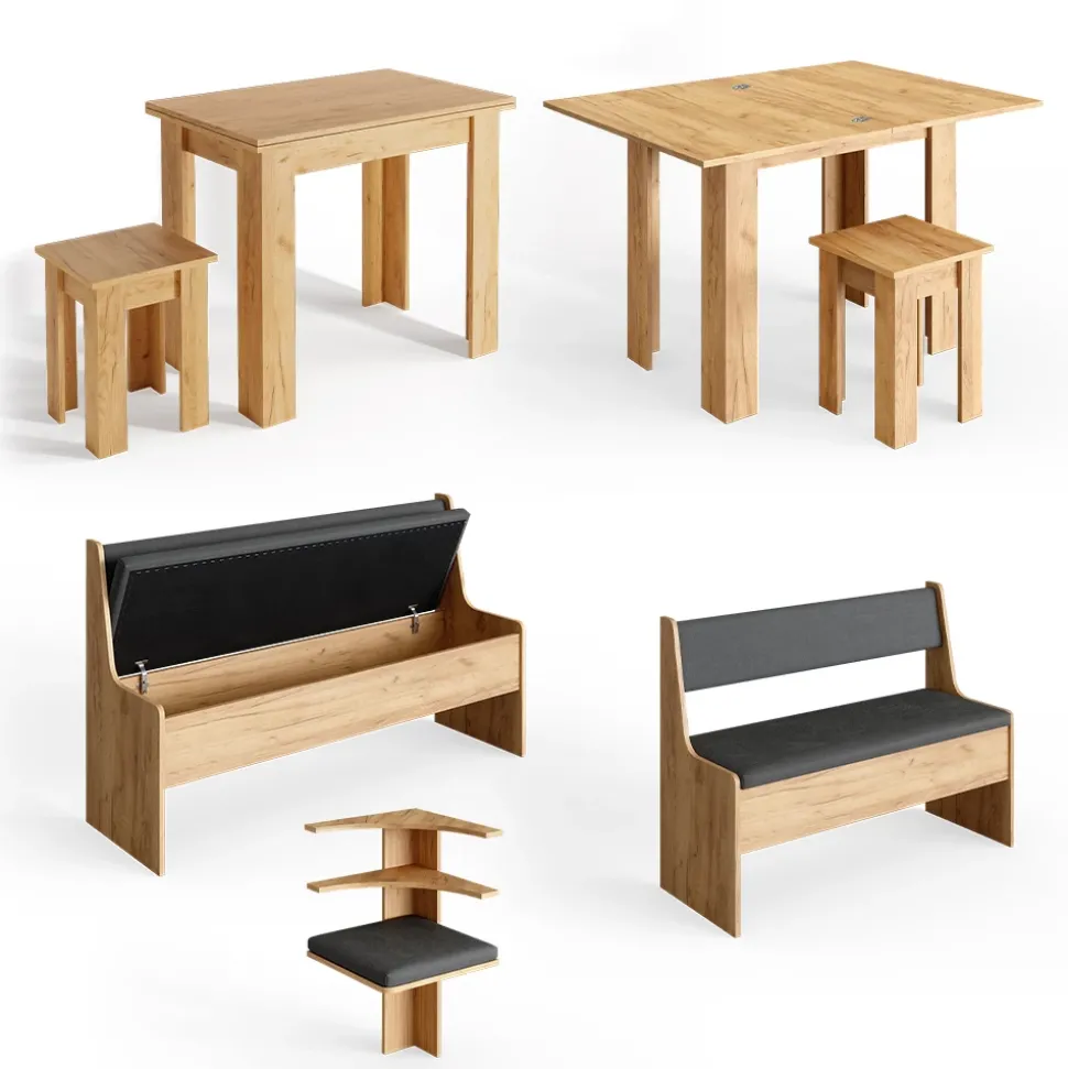 - MATERIAL: Die Essgruppe für die Küche besteht aus pflegeleichter Spanplatte 16 mm, mit einer Melaminharzbeschichtung