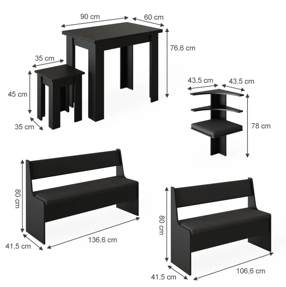 - MATERIAL: Die Essgruppe für die Küche besteht aus pflegeleichter Spanplatte 16 mm, mit einer Melaminharzbeschichtung