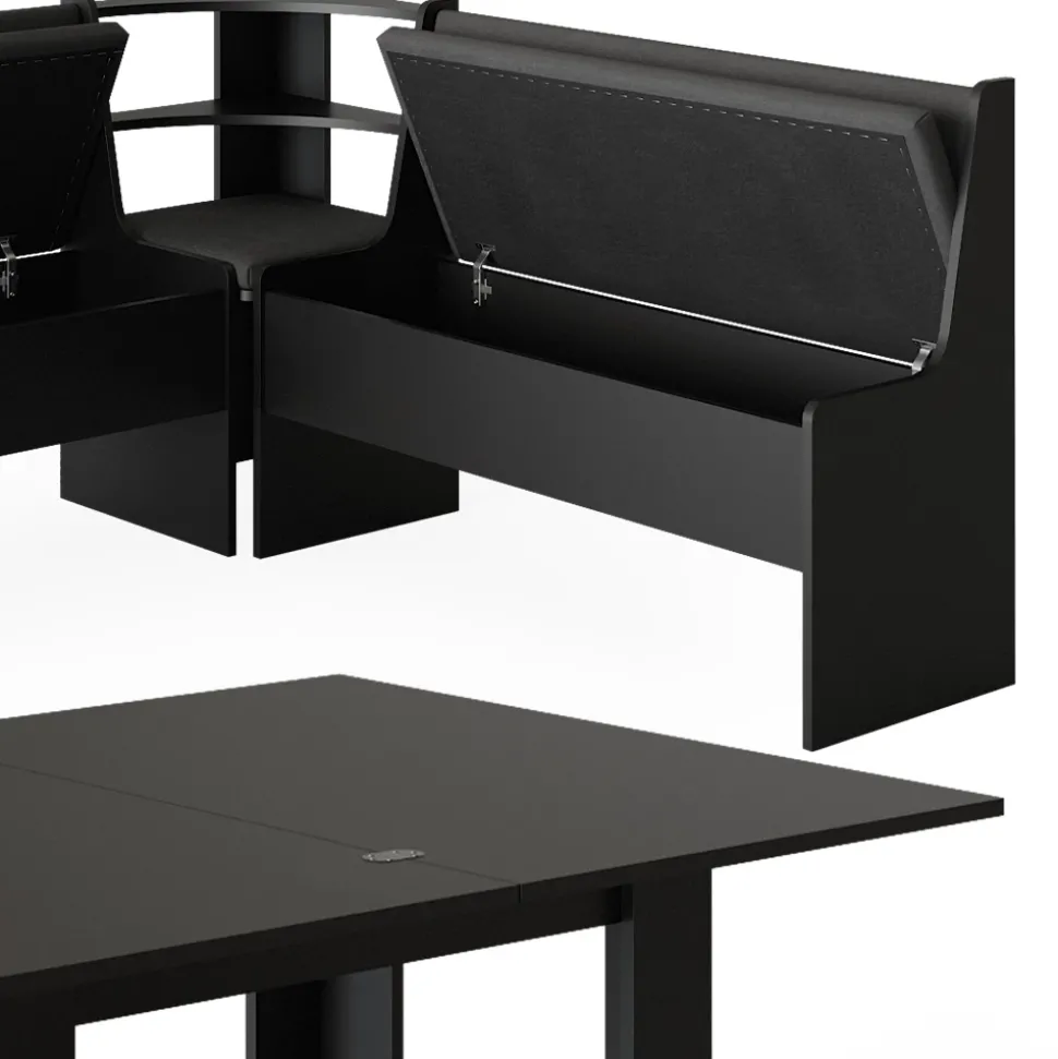 Unsere Eckbankgruppe Roman zeigt sich als Multifunktionstalent. Die Eckbank dient nicht nur als Sitzgelegenheit, sondern bietet dank der Truhen unter den Sitzflächen und den Ablagefächern in der Ecke zusätzlichen Stauraum.