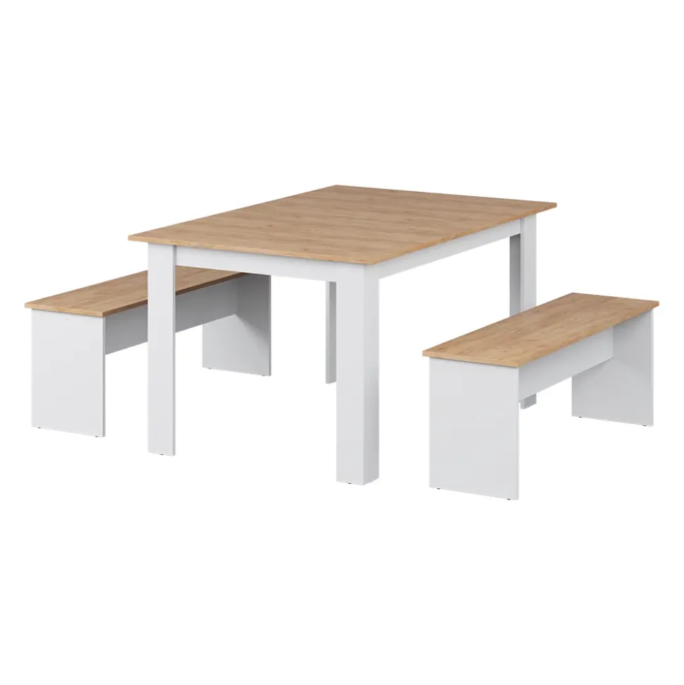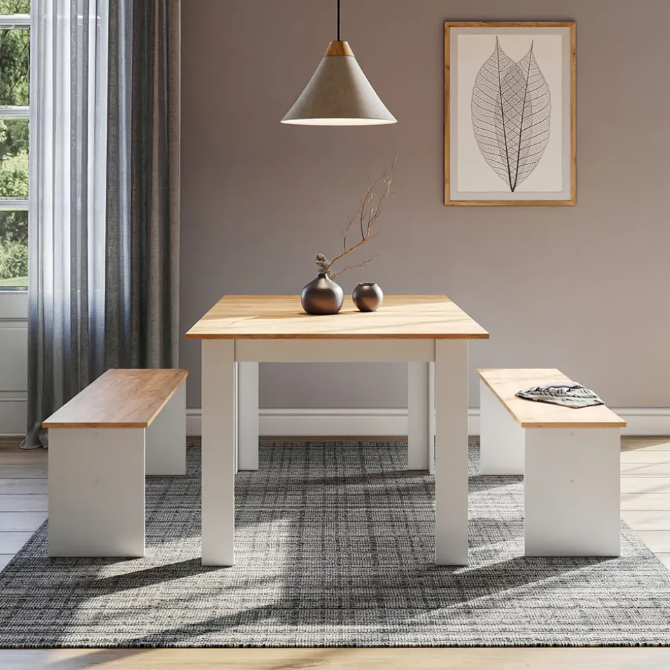 - LIEFERUMFANG: Esstisch, 2 Bänke, Montageanleitung, Montagematerial (Dekoration nicht enthalten).