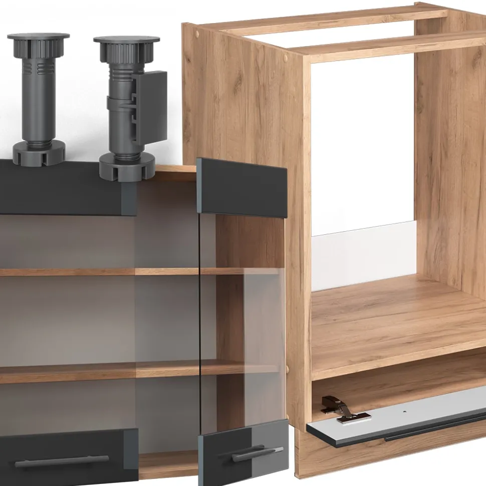 - MATERIAL: Die Winkelküche besteht aus pflegeleichter Spanplatte 16 mm, mit einer Melaminharzbeschichtung. Alle Fronten der Kücheneinheiten sind aus hochwertigem MDF hergestellt