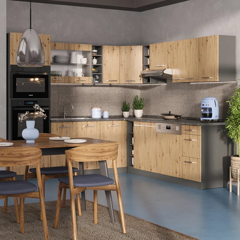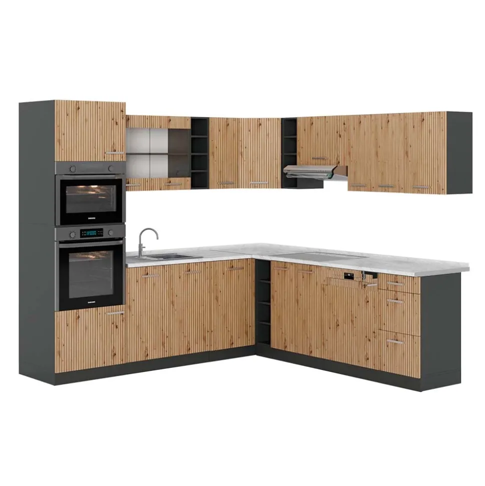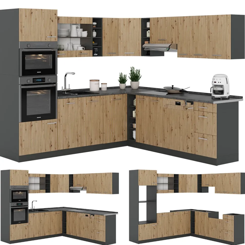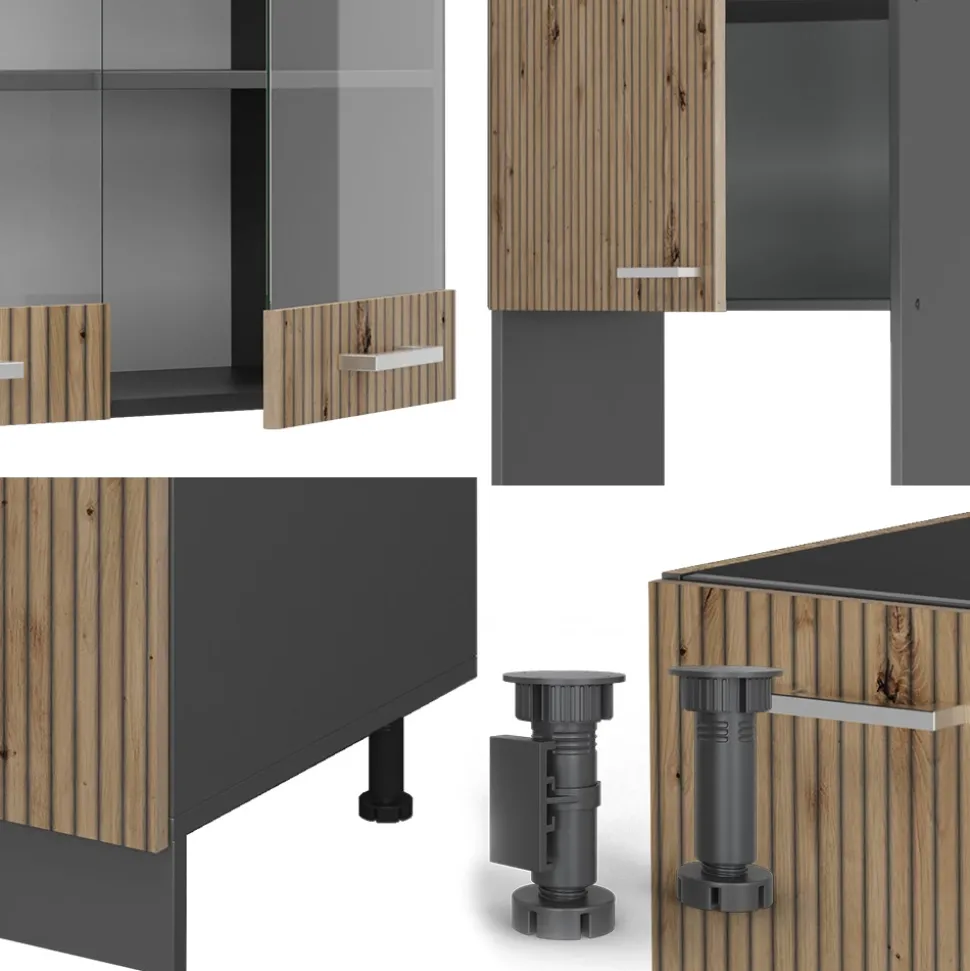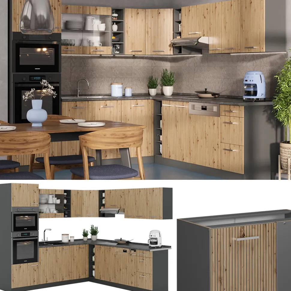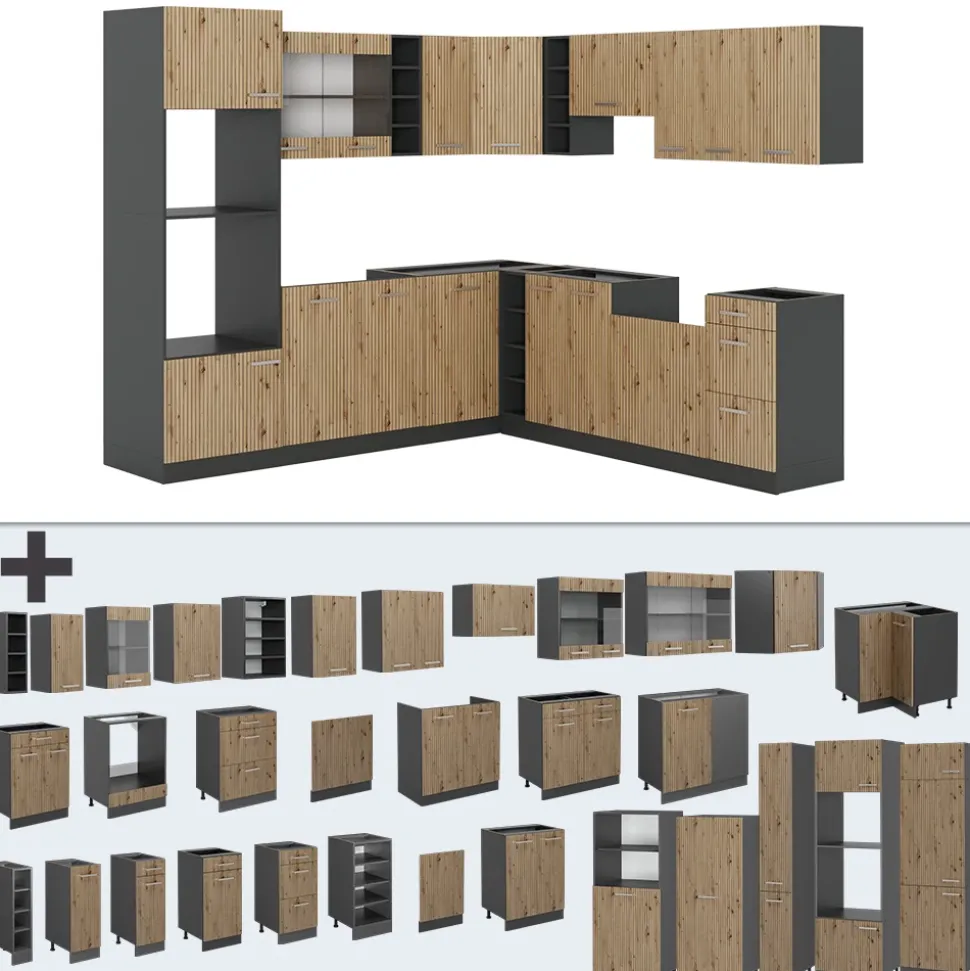 - Die Küchenzeile in L-Form bietet die Möglichkeit zur individuellen Umstellung und zum Bezug zusätzlicher Module. höhenverstellbare Füße sorgen für zusätzliche Flexibilität.