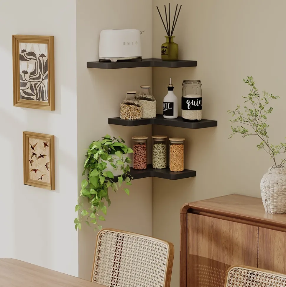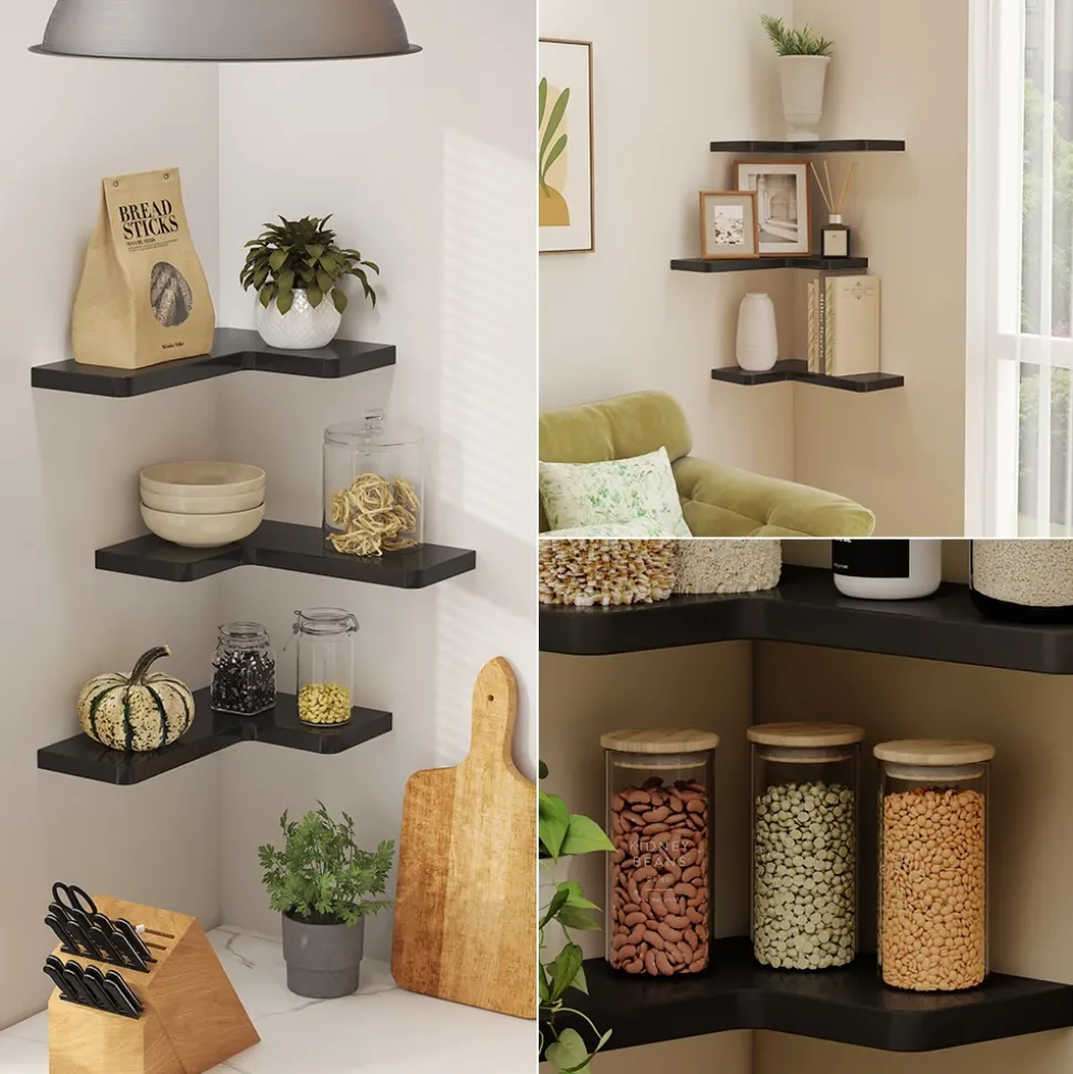 - LIEFERUMFANG: Eckregal 3er Set, Montageanleitung, Montagematerial (Dekoration nicht enthalten)