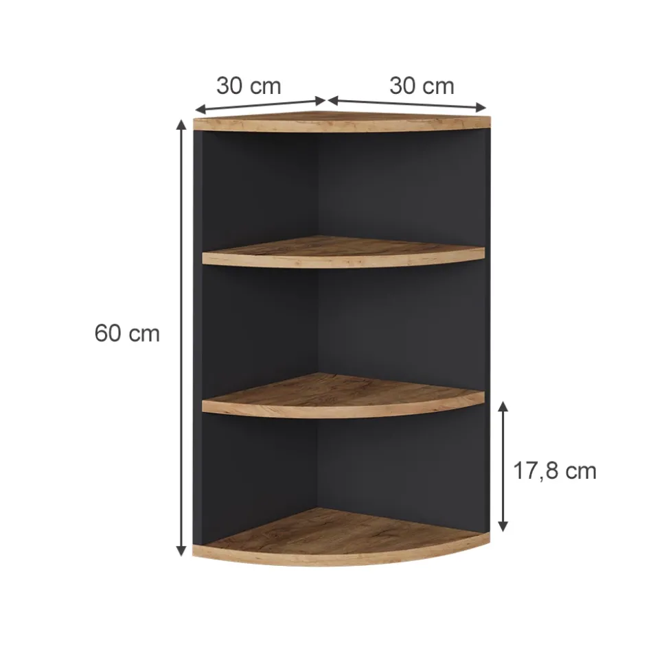 - MAßE: Das Wandregal hat eine Breite von 30 cm, eine Höhe von 60 cm und eine Tiefe von 30 cm. Alle detaillierten Größen sind auf den Fotos angegeben.