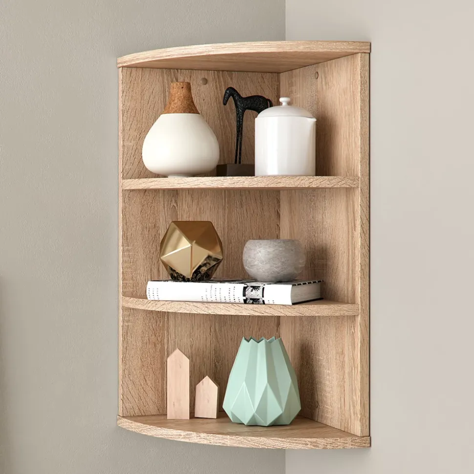 Das Eckregal ist das perfekte Möbelstück für jeden, der ein originelles Design liebt und gleichzeitig praktischen Stauraum benötigt. Durch seine halbkreisförmige Form fügt sich das Regal perfekt in jede Ecke des Raumes ein und wird damit zum Blickfang jeder Wohnung. Die 3 offenen Ablagen bieten ausreichend Platz für Bücher, Dekoration oder andere Gegenstände, die Sie in Szene setzen möchten. Mit der Wandhalterung lässt sich das Regal ganz einfach und sicher an der Wand befestigen. Das Modell lässt sich zudem hervorragend mit anderen Möbeln kombinieren und verleiht so jedem Wohnzimmer eine ganz besondere Note. Gönnen Sie sich jetzt das Eckregal und schaffen Sie sich Ihren ganz eigenen Wohntraum!