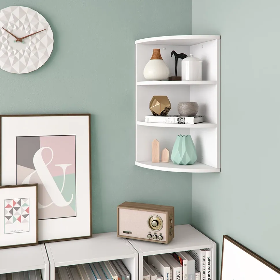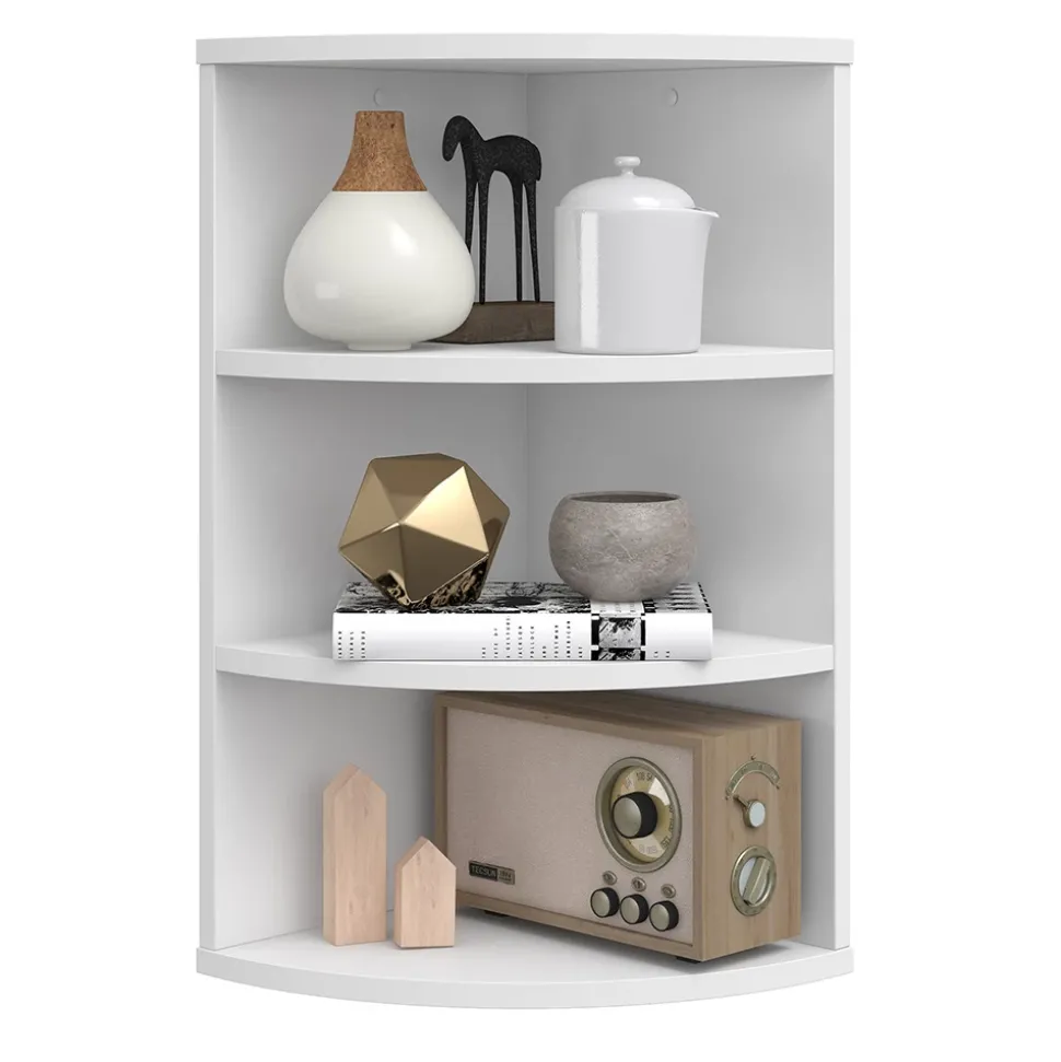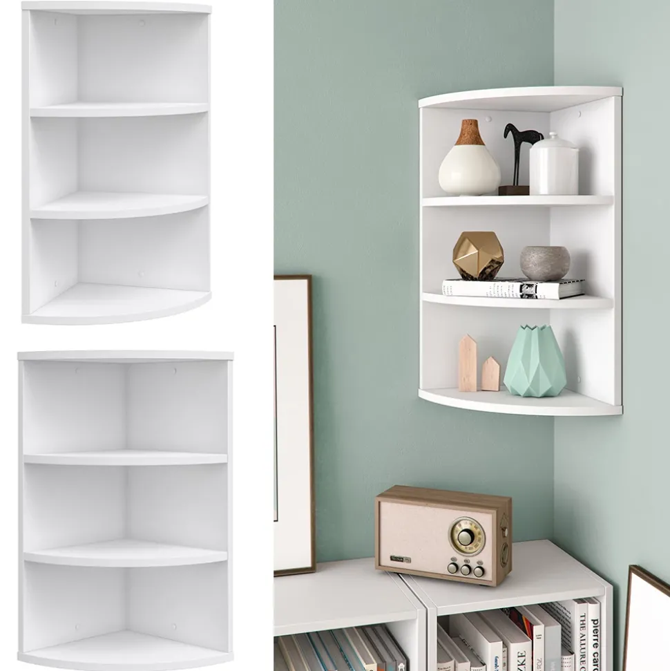 - Das halbkreisförmige Bücherregal bietet 3 offene Ablagen und eine Wandhalterung – perfekt zur Aufbewahrung und Präsentation von Büchern und Dekorationen.