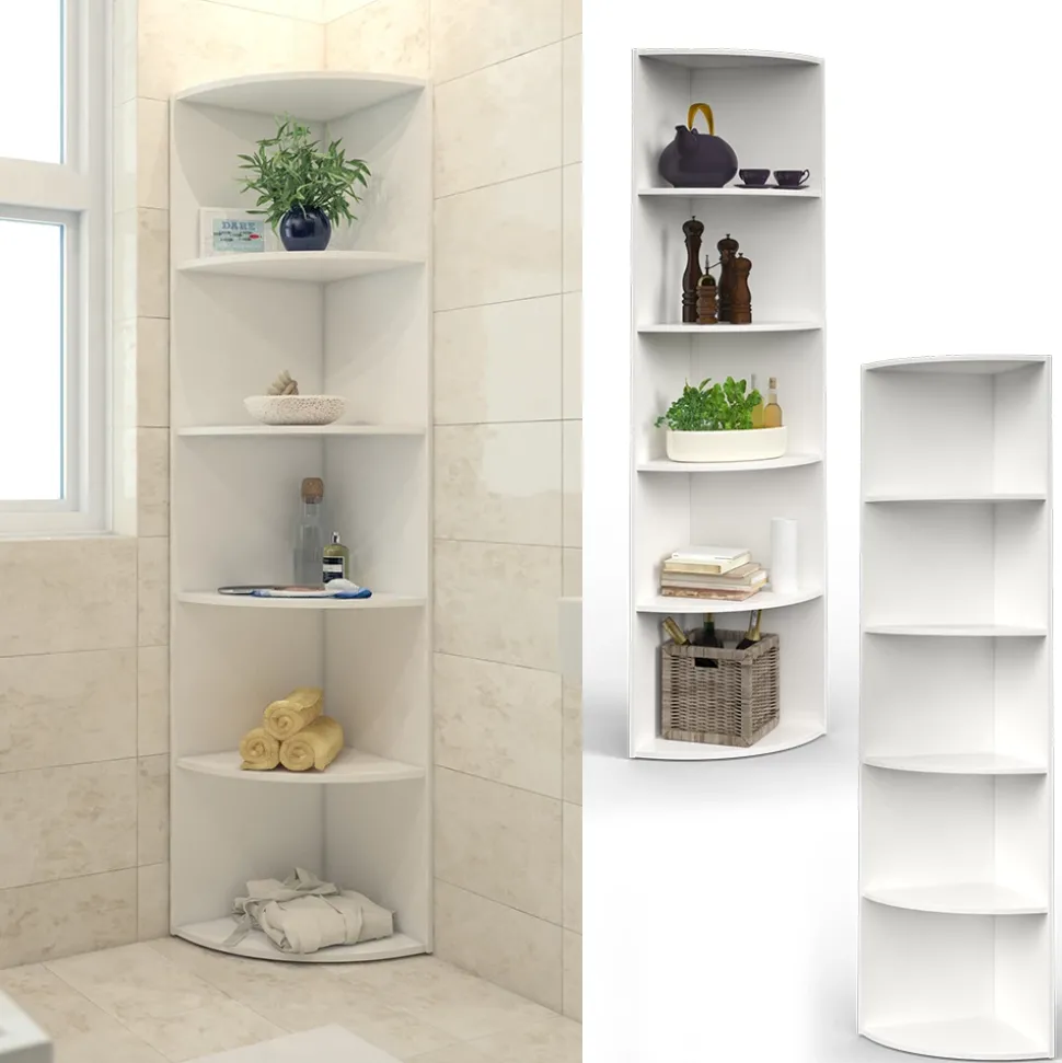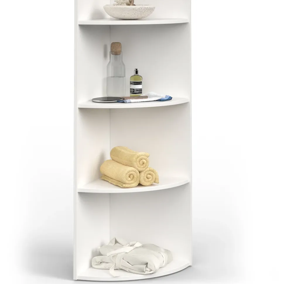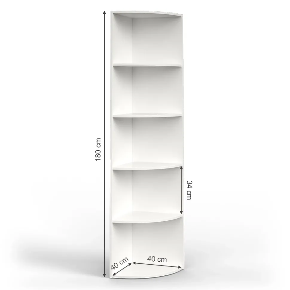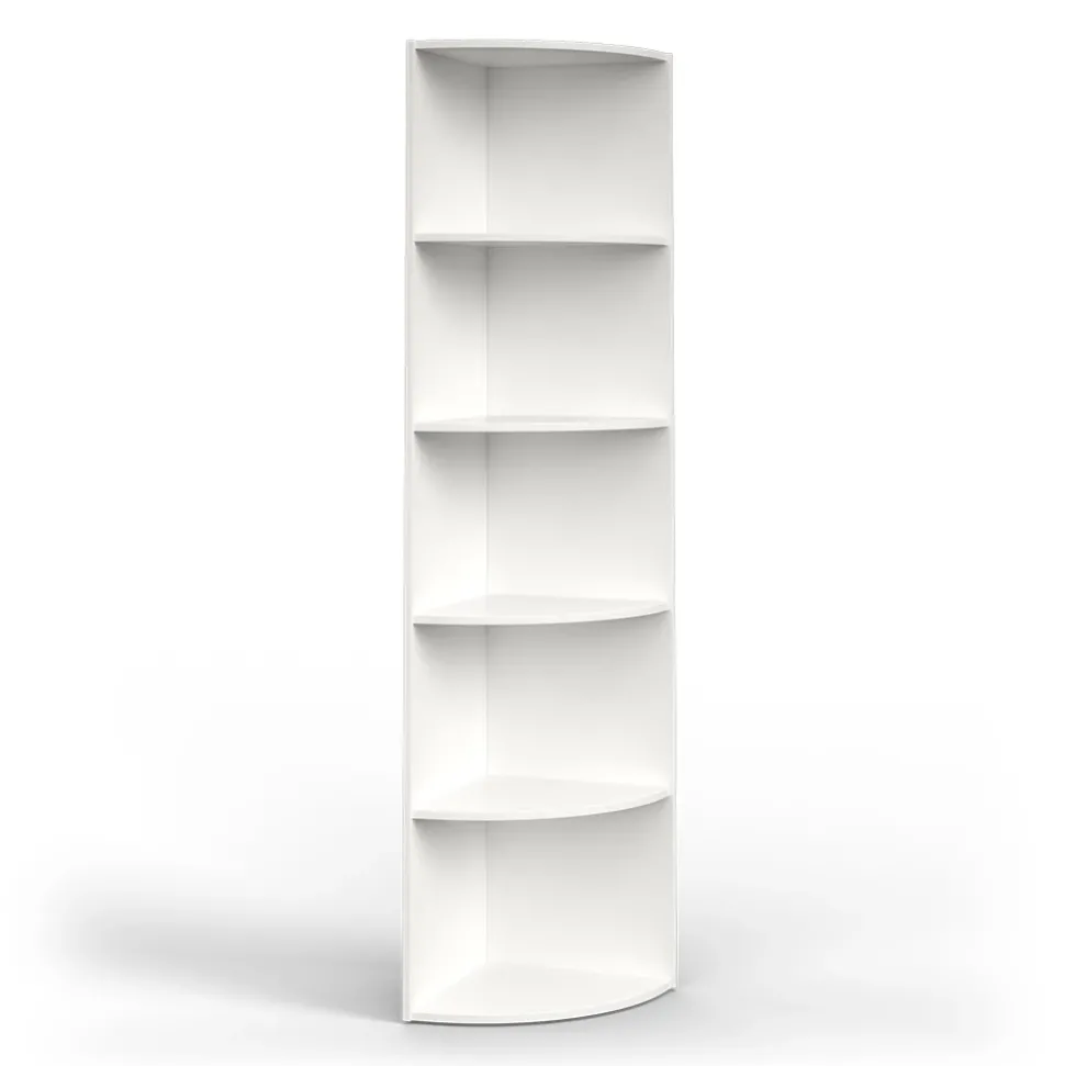 - Das stehende Bücherregal ist platzsparend und hat eine halbkreisförmige Form. Mit 5 offenen Ablagen bietet es ausreichend Platz für Bücher und andere Gegenstände.