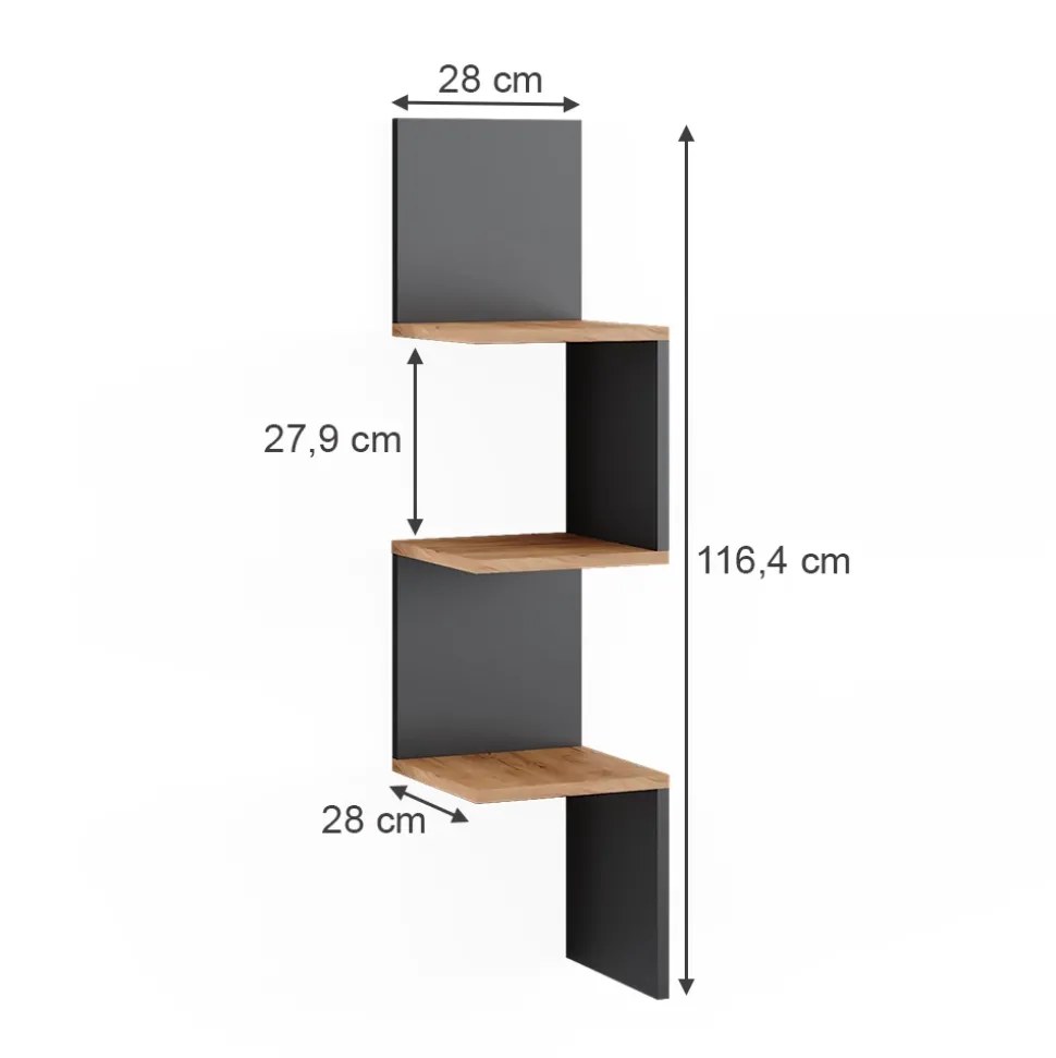 - MATERIAL: Das Eckregal besteht aus pflegeleichter Spanplatte, 16 mm.