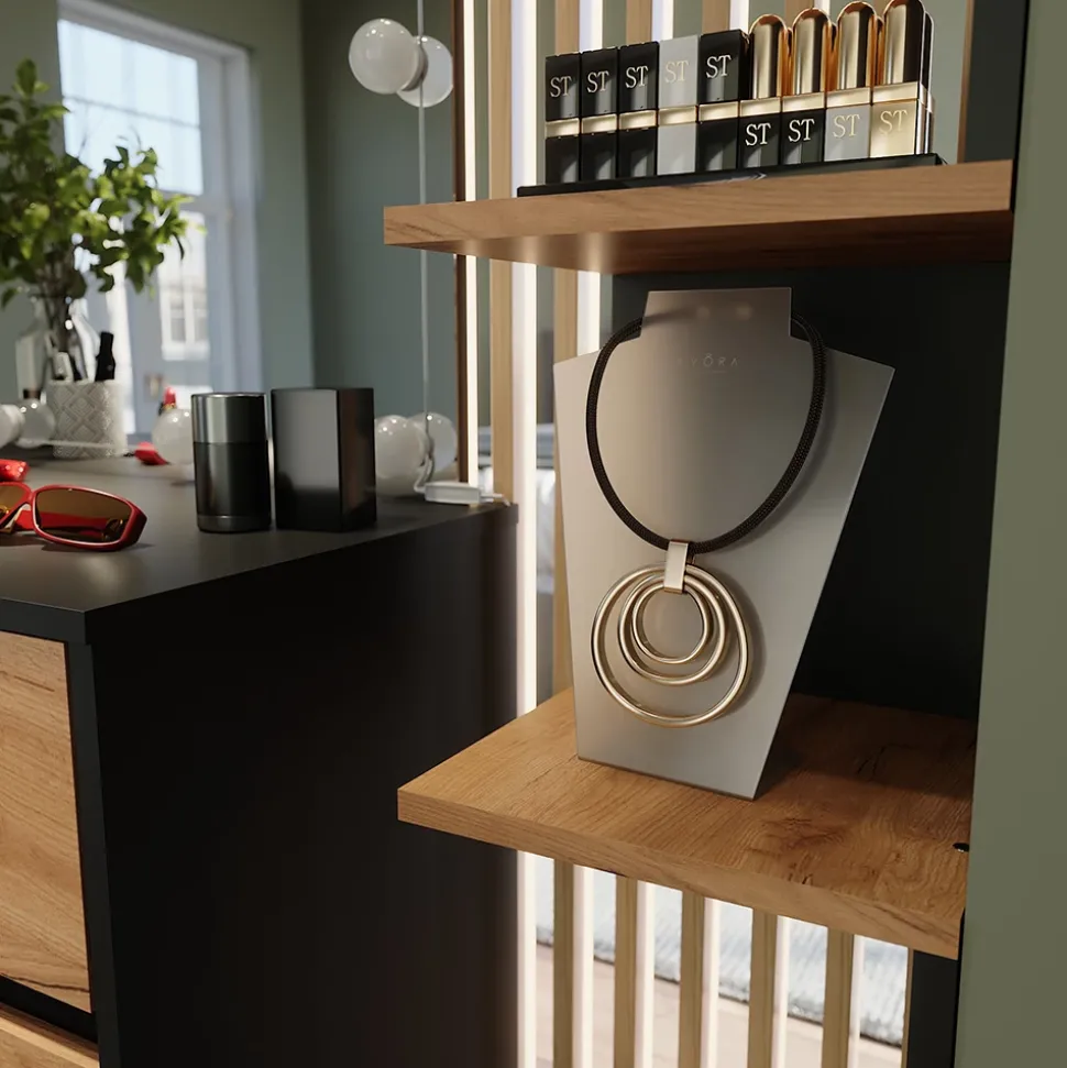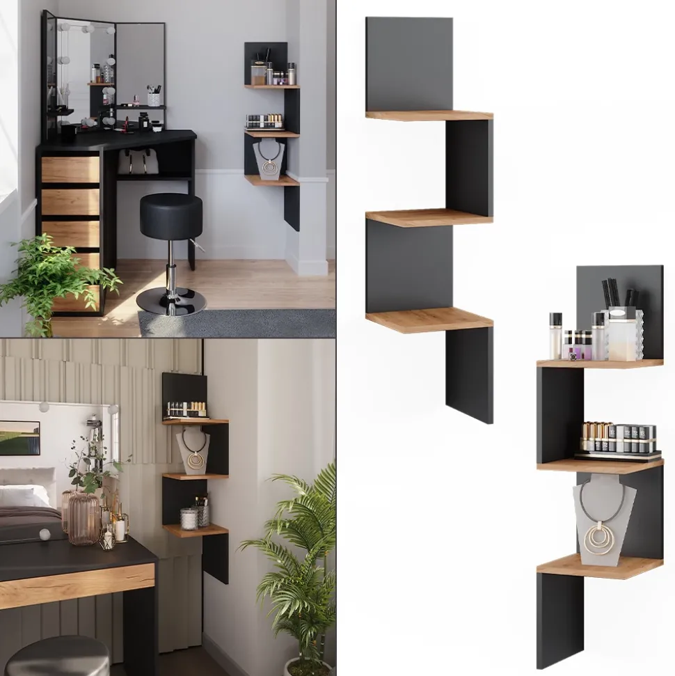 Das Eckregal Paolo ist ein vielseitiges Möbelstück, das nicht nur praktischen Stauraum bietet, sondern auch einen Hauch von Eleganz in Ihr Zuhause bringt. Mit seinen cleveren Funktionen als hängendes Design ist es perfekt für diejenigen, die ihr Zuhause stilvoll und organisiert gestalten möchten. Stellen Sie sich vor, wie dieses Regal Ihre Lieblingsbücher, Dekorationsgegenstände und Erinnerungsstücke zur Schau stellt und gleichzeitig Ihre Räume auf eine einzigartige Weise schmückt. Gönnen Sie sich das Eckregal Paolo und verleihen Sie Ihrem Zuhause einen Hauch von Raffinesse und Gemütlichkeit.
