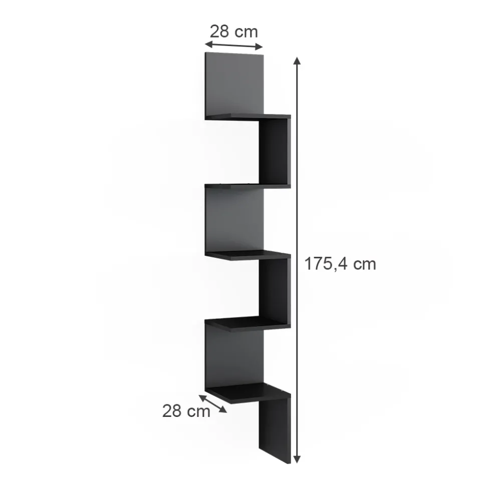 - MAßE: Das hängende Wandregal mit 5 Fächern hat folgende Maße: Breite: 28 cm, Höhe: 175,4 cm, Tiefe: 28 cm.