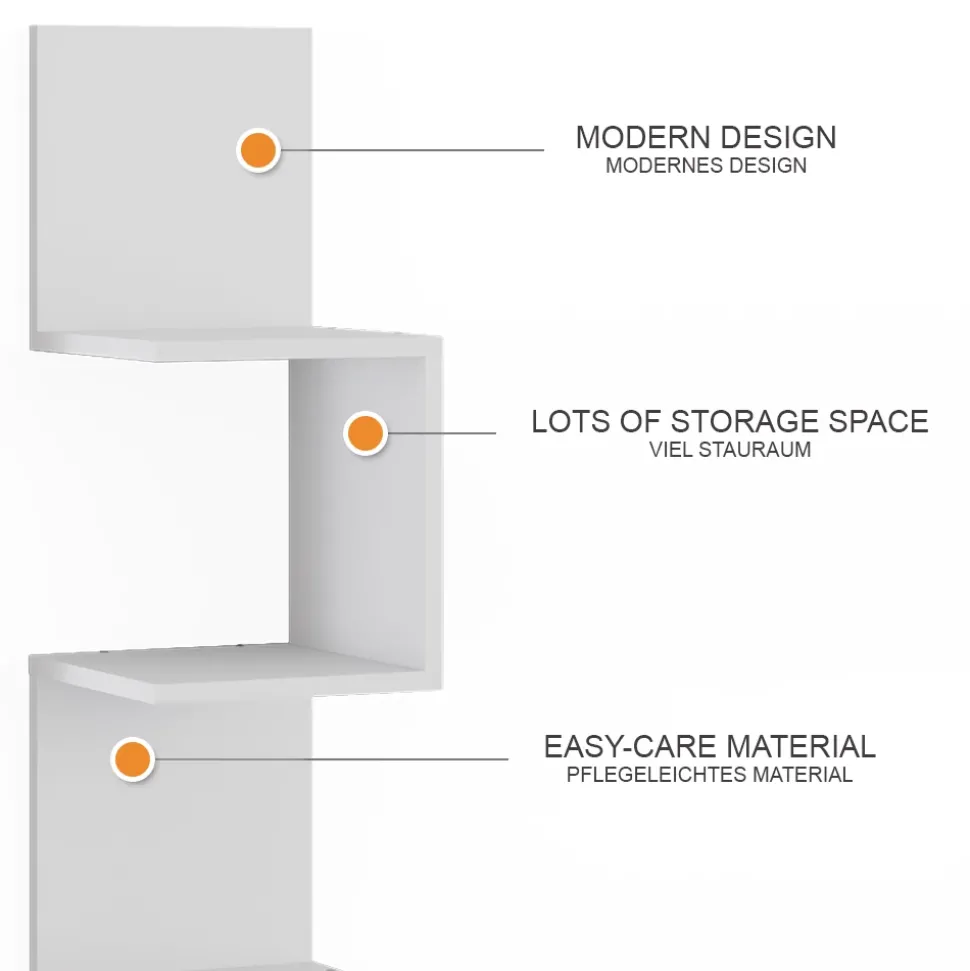- MATERIAL: Das Eckregal besteht aus pflegeleichter Spanplatte, 16 mm.