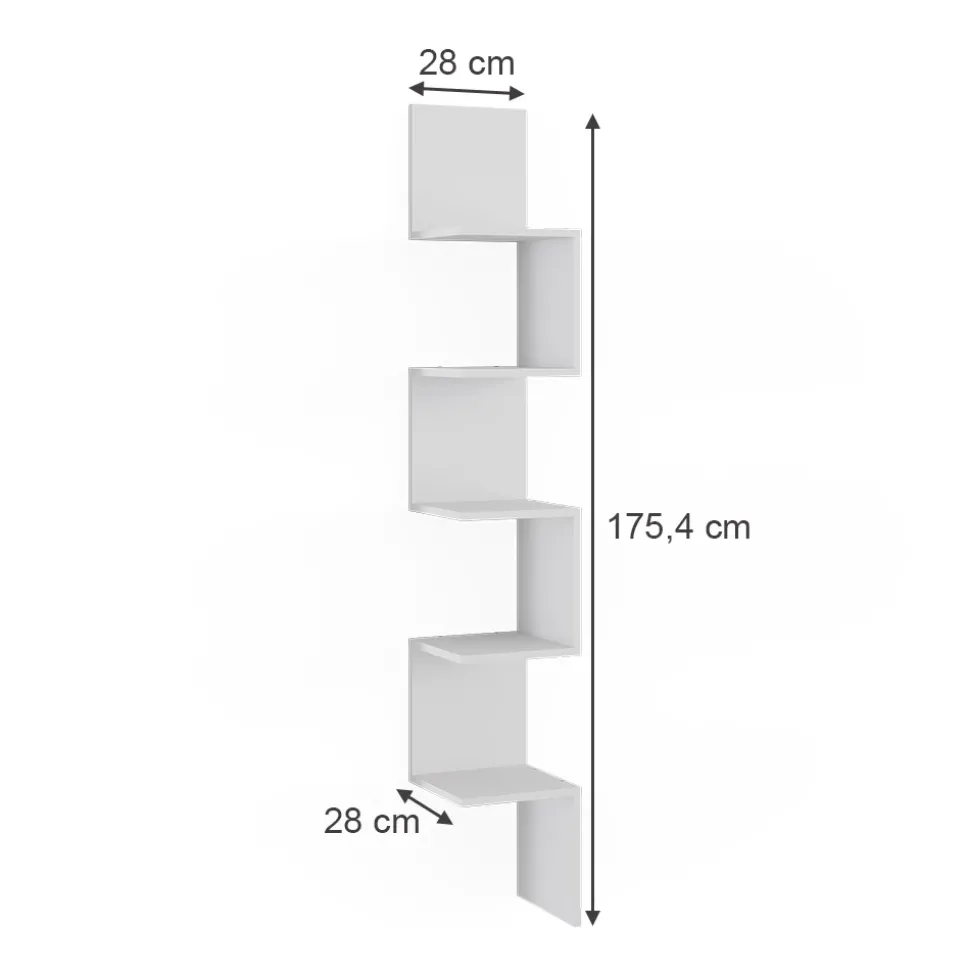 - MAßE: Das hängende Wandregal mit 5 Fächern hat folgende Maße: Breite: 28 cm, Höhe: 175,4 cm, Tiefe: 28 cm.