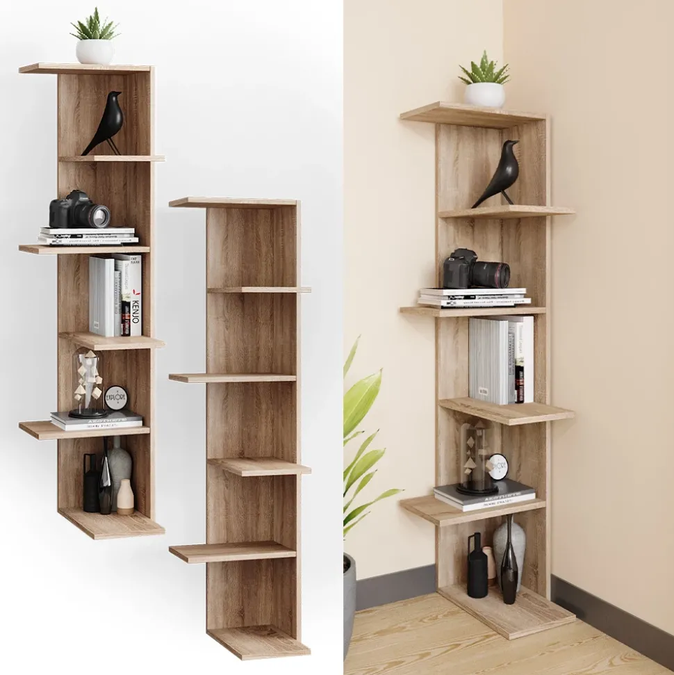 - MATERIAL: Das Regal für die Ecke besteht aus pflegeleichter Spanplatte 16 mm, mit einer Melaminharzbeschichtung