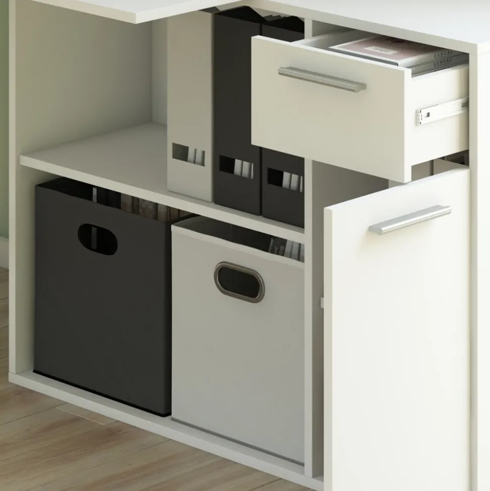 Der Eckschreibtisch Robin ist der perfekte Partner für ein produktives Arbeitsumfeld. Der diskrete und moderne Stil des Winkelschreibtisches passt perfekt in jedes Büro. Mit einer ausziehbaren Schublade und offenen sowie geschlossenen Ablageflächen bietet der Schreibtisch Robin ausreichend Stauraum für alle Arbeitsutensilien. Der Schreibtisch kann entweder schräg oder aufrecht aufgestellt werden, je nach individuellen Bedürfnissen. Das Modell lässt sich auch hervorragend mit anderen Möbelstücken kombinieren. Der Eckschreibtisch Robin ist mehr als nur ein Möbelstück – er ist ein Begleiter für jeden Arbeitstag und erlaubt es, das Büro in einen kreativen Bereich zu verwandeln.