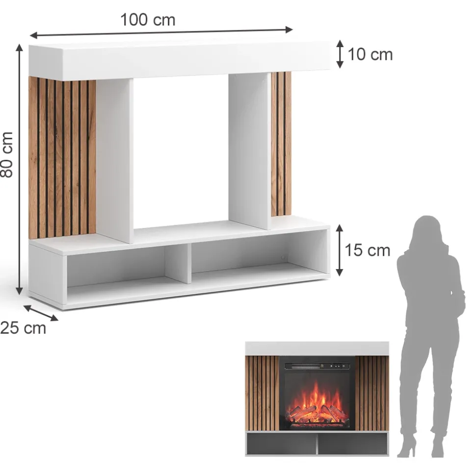 - MAßE: Die Kaminumrandung hat eine Tiefe von 25 cm, eine Breite von 100 cm und eine Höhe von 80 cm.