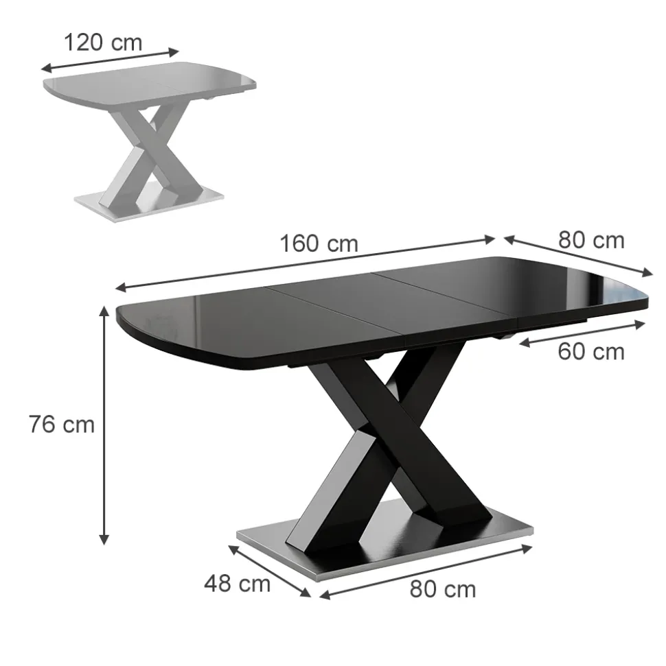 - MAßE: Der Küchentisch hat eine Tiefe von 80 cm, eine Breite von 120 – 160 cm und eine Höhe von 76 cm. Alle detaillierten Größen sind auf den Fotos angegeben.