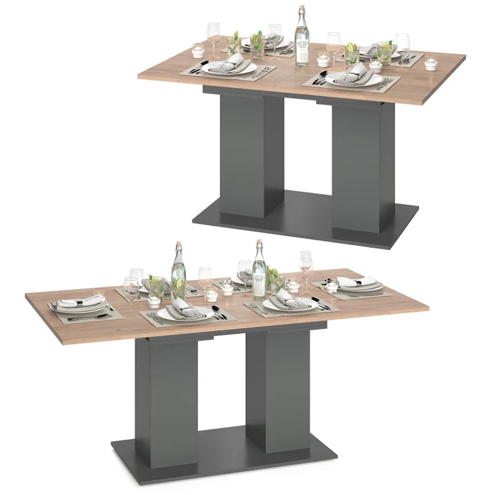 Der Esstisch „Dix“ ist die perfekte Lösung für jeden, der auf der Suche nach einem funktionalen und platzsparenden Tisch für die Küche oder das Esszimmer ist. Das solide und stabile Design des Tisches sorgt dafür, dass er auch bei häufiger Verwendung stets standhaft bleibt. Mit „Dix“ hast du eine fertige Lösung für deine Küche oder dein Esszimmer, die sowohl praktisch als auch stylisch ist. Zudem gibt es dieses Modell auch in anderen Ausführungen, sodass du den Tisch perfekt an deine Bedürfnisse anpassen kannst. Holen Sie sich mit dem „Dix“ Esstisch ein Stück Gemütlichkeit in Ihr Zuhause. Hier finden nicht nur Mahlzeiten statt, sondern auch Gespräche, Lachen und gemeinsame Zeit. Mit seiner ausziehbaren Tischplatte wird er Ihnen bei spontanem Besuch eine extra Portion Platz bieten. Ein Tisch, der nicht nur nützlich ist, sondern auch das Herz wärmt.