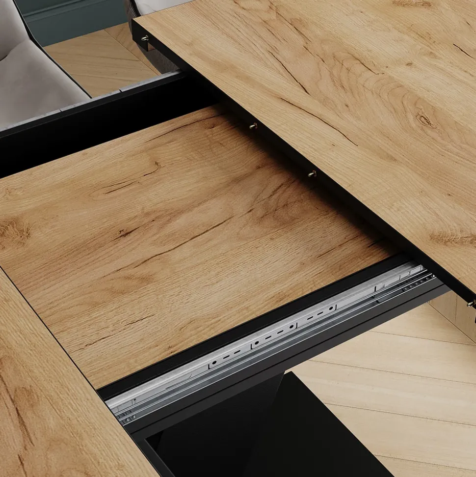 Entdecken Sie den Esstisch Fenaro – mehr als nur ein Möbelstück, sondern der Ort, an dem Erinnerungen entstehen. Dieser ausziehbare Tisch verwandelt Ihr Esszimmer in einen einladenden Raum für Familienfeiern, gemütliche Abendessen mit Freunden oder romantische Dinner. Mit seiner hochwertigen Verarbeitung und cleveren Funktionalität lässt sich der Tisch mühelos von 120 cm auf 160 cm erweitern, sodass Platz für alle ist, die Ihnen am Herzen liegen. Die zusätzliche Tischplatte kann diskret im Tisch verstaut werden, wenn sie nicht gebraucht wird. Gestalten Sie Ihre gemeinsamen Momente unvergesslich – mit Fenaro.