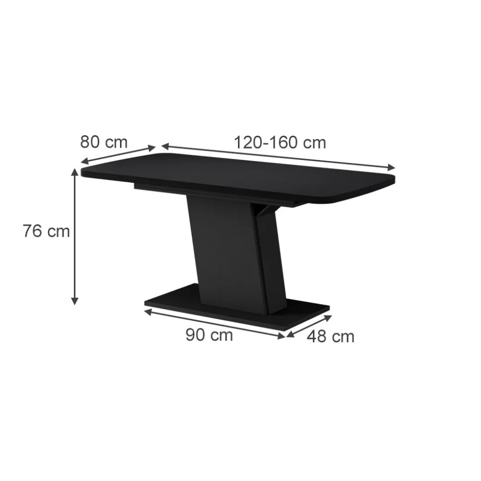 Tischplatte:120/160 x 3.6 x 80 cm (BxHxT)