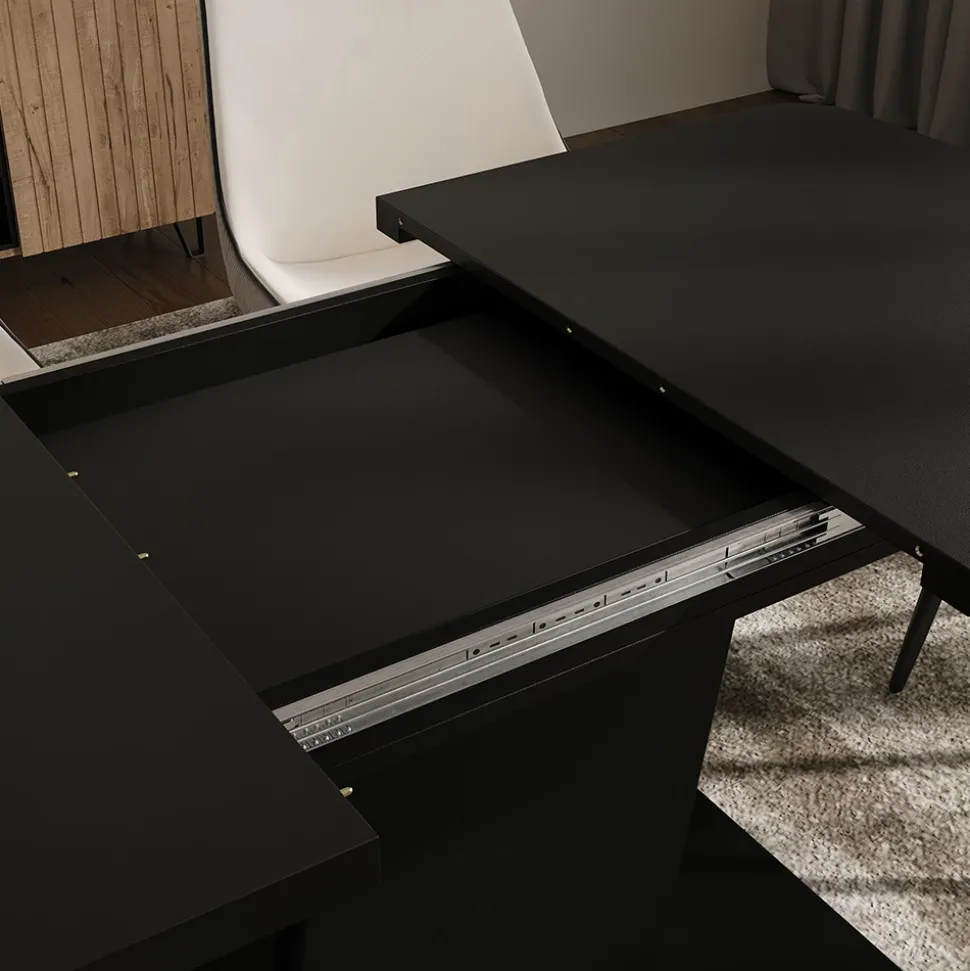 - Vielseitig: Der ausziehbare Esszimmertisch bietet flexiblen Platz, perfekt für verschiedene Anlässe, und lässt sich bei Bedarf einfach erweitern.