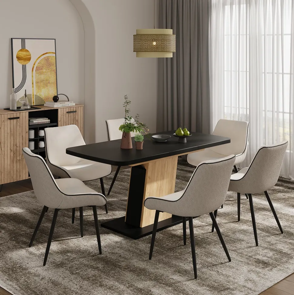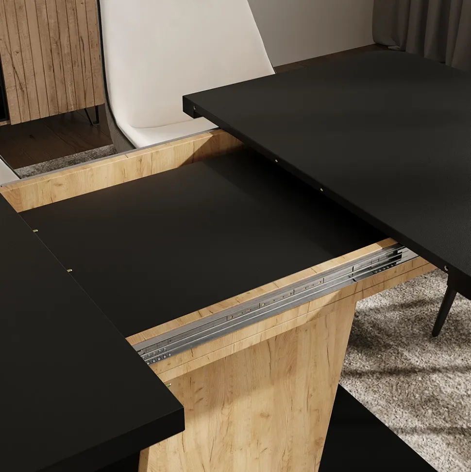 - Vielseitig: Der ausziehbare Esszimmertisch bietet flexiblen Platz, perfekt für verschiedene Anlässe, und lässt sich bei Bedarf einfach erweitern.
