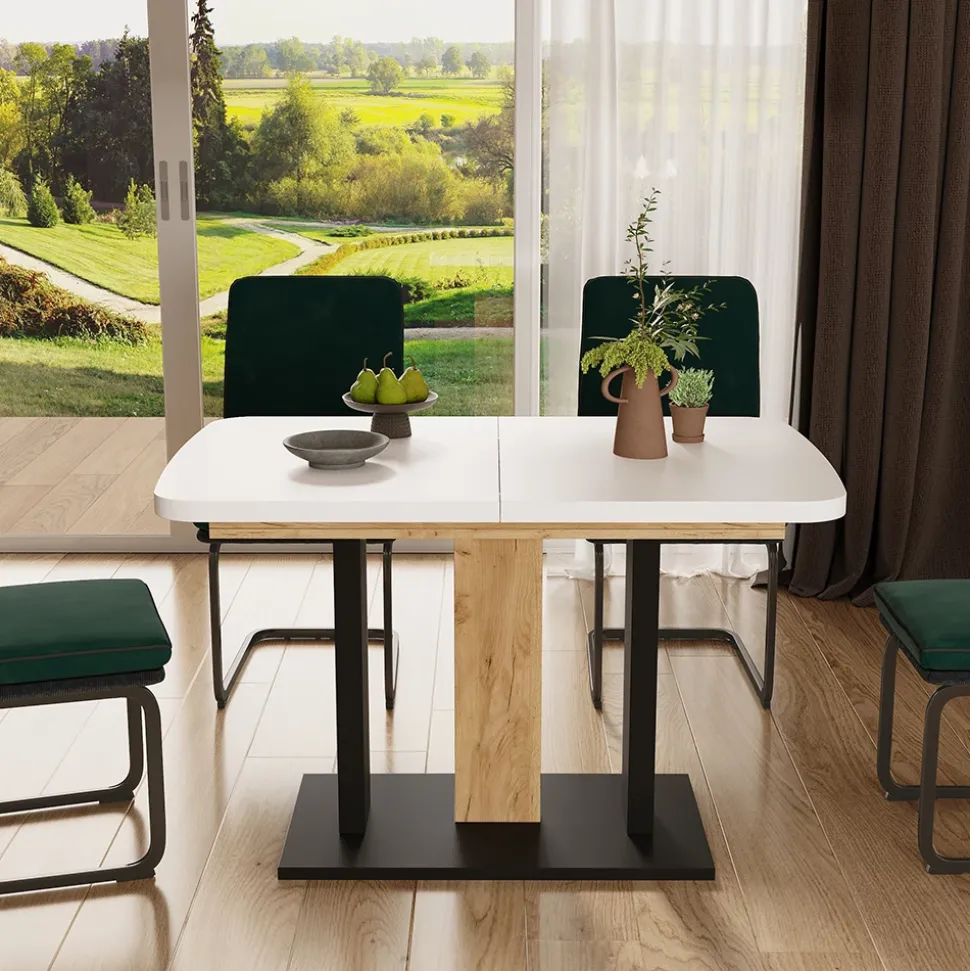 Der Esstisch Fenaro ist nicht einfach nur ein Möbelstück für Ihr Zuhause – er ist der Mittelpunkt für gemütliche Runden mit Familie und Freunden, an dem viele unvergessliche Momente geteilt werden. Mit seinem praktischen und stilvollen Design passt er perfekt in Ihr Wohnzimmer, Ihre Küche oder Ihr Esszimmer und wird so zum Herzstück Ihres Zuhauses. Der ausziehbare Esstisch bietet genügend Platz für gesellige Mahlzeiten und gesellige Abende. Wählen Sie aus verschiedenen Farben und Ausführungen, um Ihren persönlichen Stil widerzuspiegeln. Entdecken Sie mit dem Küchentisch Fenaro die Freude am gemeinsamen Essen und Beisammensein.