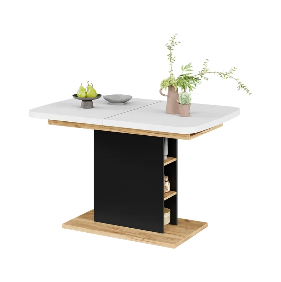 - Praktisch: Der ausziehbare Esszimmertisch überzeugt mit 4 höhenverstellbaren Einlegeböden und flexibler Funktion, sodass er sich ideal an unterschiedliche Bedürfnisse und Räume anpasst.