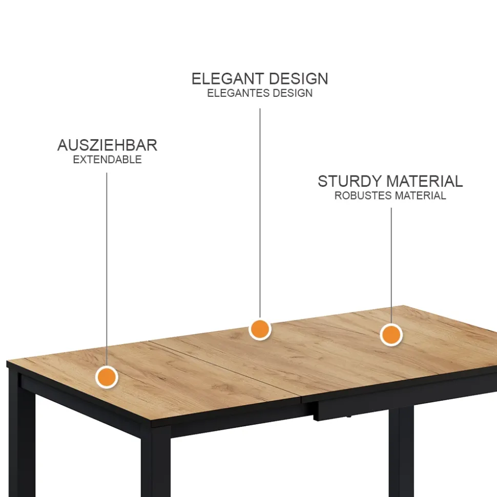 - Dieser Esstisch ist ausziehbar und überzeugt durch sein tolles Design sowie seinen praktischen Stil. Perfekt für alle, die Flexibilität und Ästhetik schätzen.