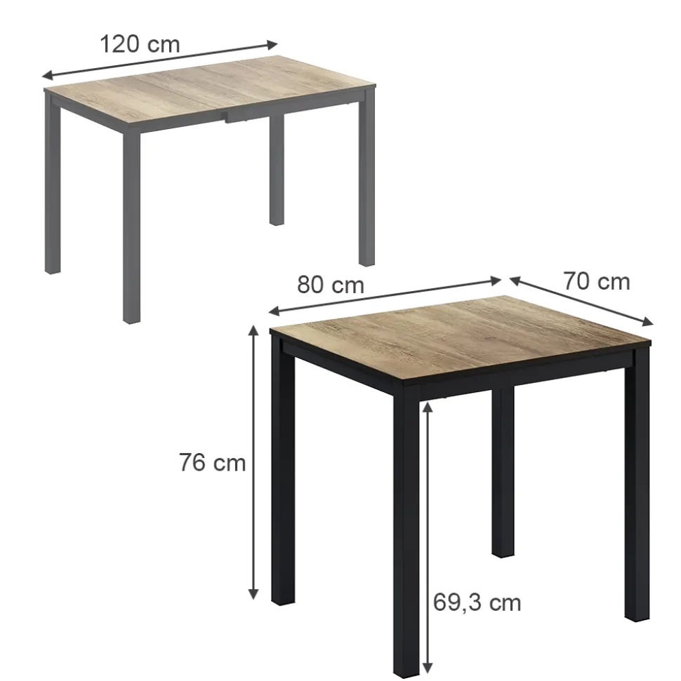 - MAßE: Der Küchentisch hat eine Tiefe von 70 cm, eine Breite von 80 bis 120 cm und eine Höhe von 76 cm.