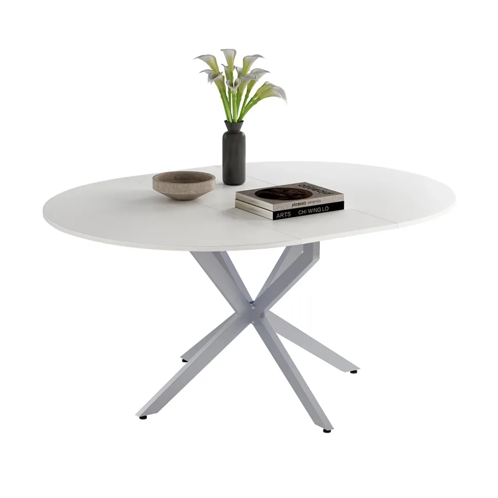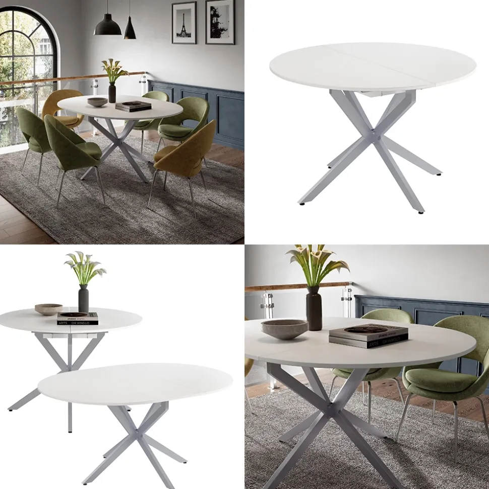 - Der ausziehbare Esszimmertisch eignet sich perfekt für Familientreffen und verfügt über eine runde Form, die ideal für das Esszimmer geeignet ist.